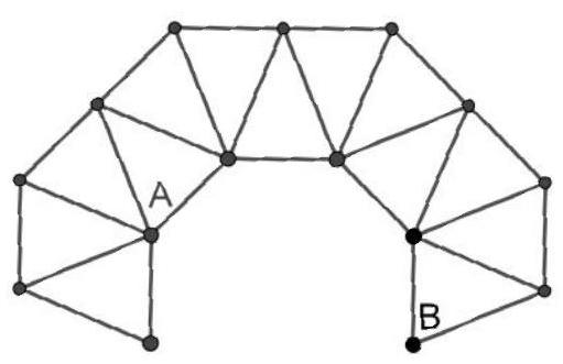 8.4. From identical isosceles triangles, where the angle opposite the base is $45^{\circ}$ and the lateral side is 1, a figure was formed as shown in the diagram. Find the distance between points $A$ and $B$.