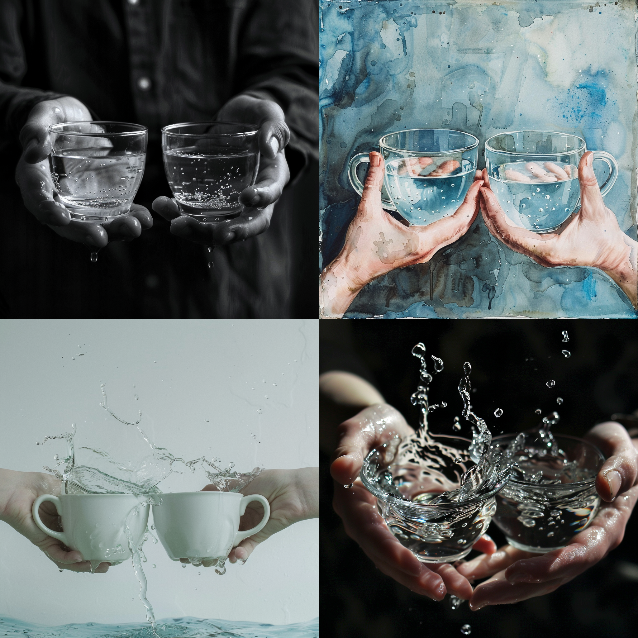 Two cups of water while holding on --seed 1683748397 --ar 1:1 --v 6 | 2024-03-17T03:38:57Z | |