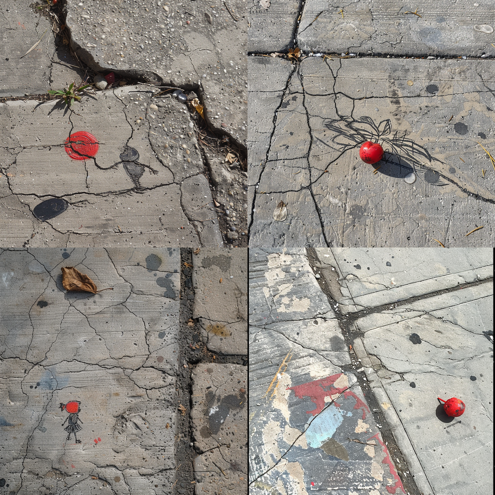 Artwork on sidewalk with a little red toy --seed 1784523952 --ar 1:1 --v 6 | 2024-03-17T04:02:10Z | |