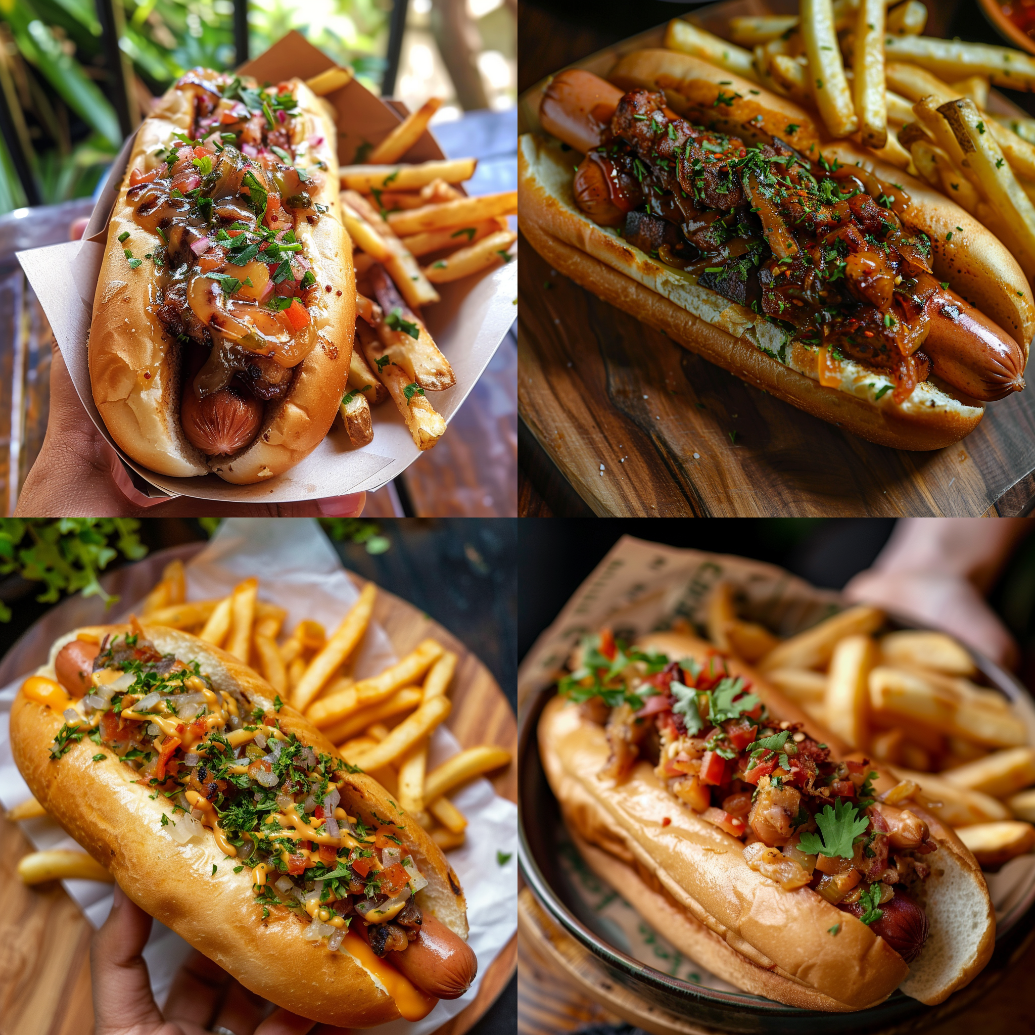 A hotdog bun held in a open sandwich with meat and garnishment alongside fries --seed 3445753215 --ar 1:1 --v 6 | 2024-03-17T04:17:05Z | |