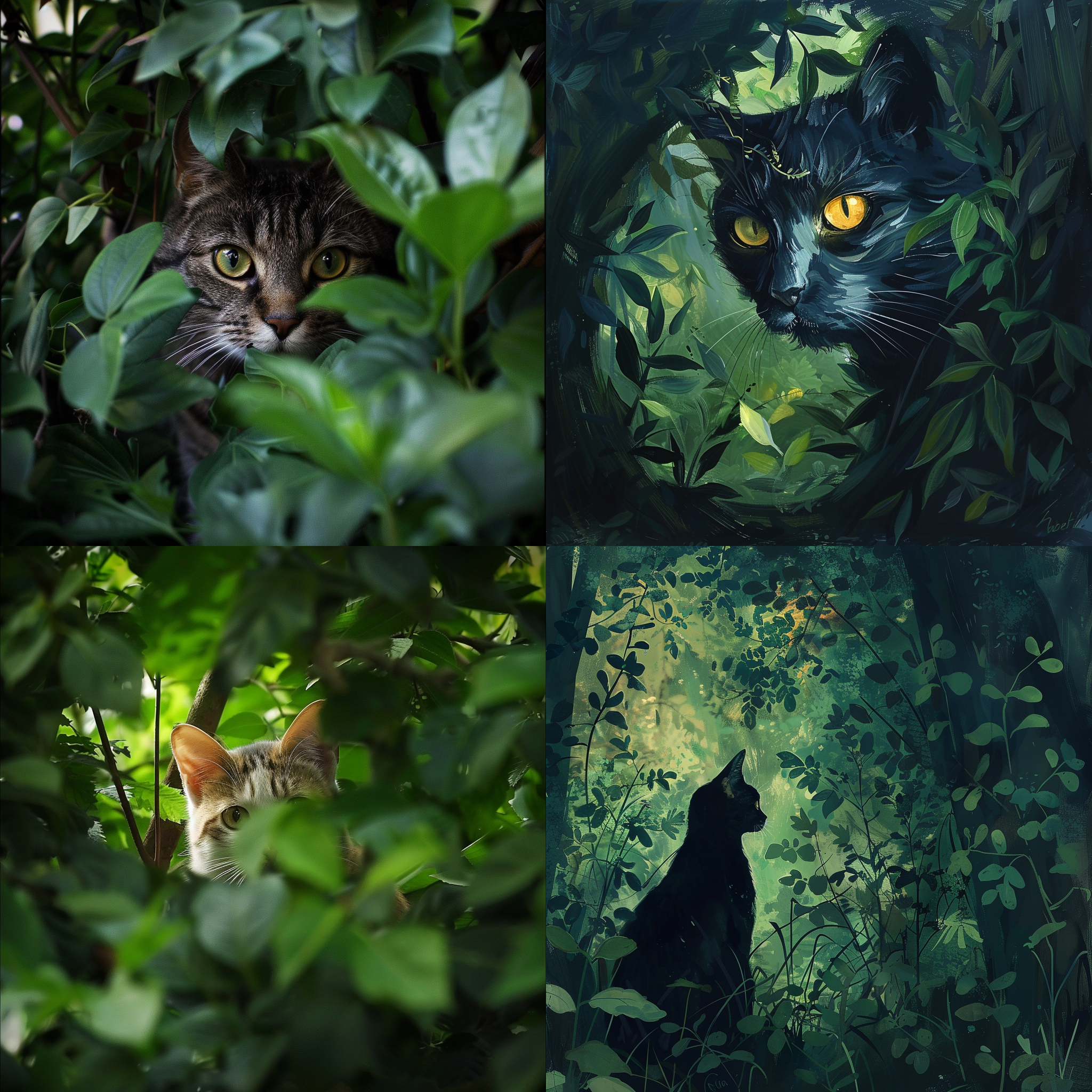 A cat looking through a lush green trees --seed 1374295745 --ar 1:1 --v 6 | 2024-03-17T04:09:25Z | |