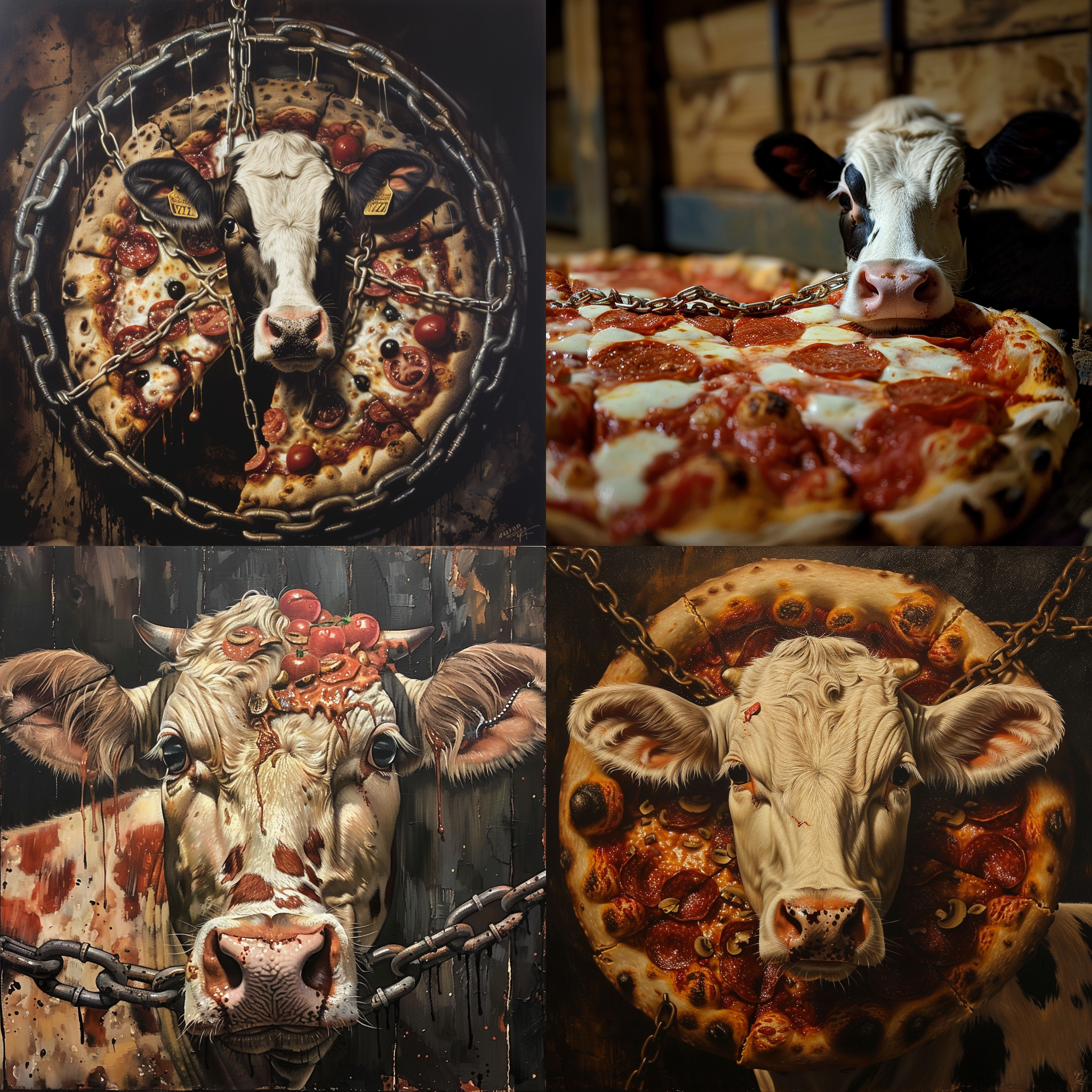 Cow chained into a pizza --seed 1161683662 --ar 1:1 --v 6 | 2024-03-17T04:06:02Z | |
