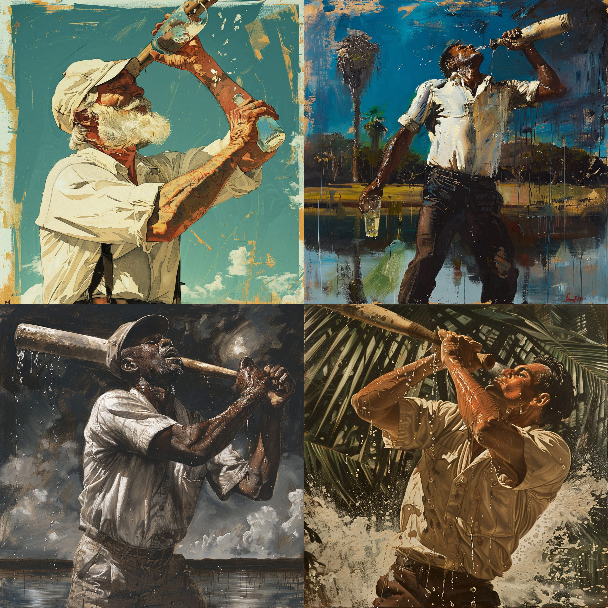 A man enjoying a drink of water A man swinging a bat in his hands --seed 2962781310 --ar 1:1 --v 6 | 2024-03-17T04:10:59Z | |