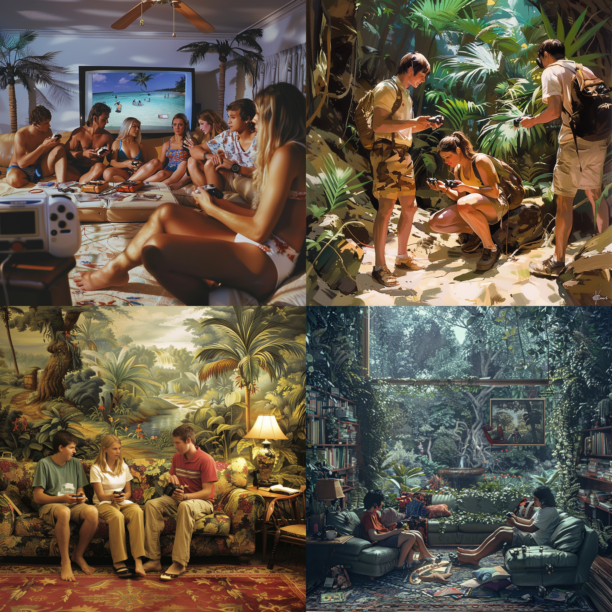 People playing with a Nintendo Wii game controllers in their natural habitat --seed 1076479787 --ar 1:1 --v 6 | 2024-03-17T04:12:44Z | |