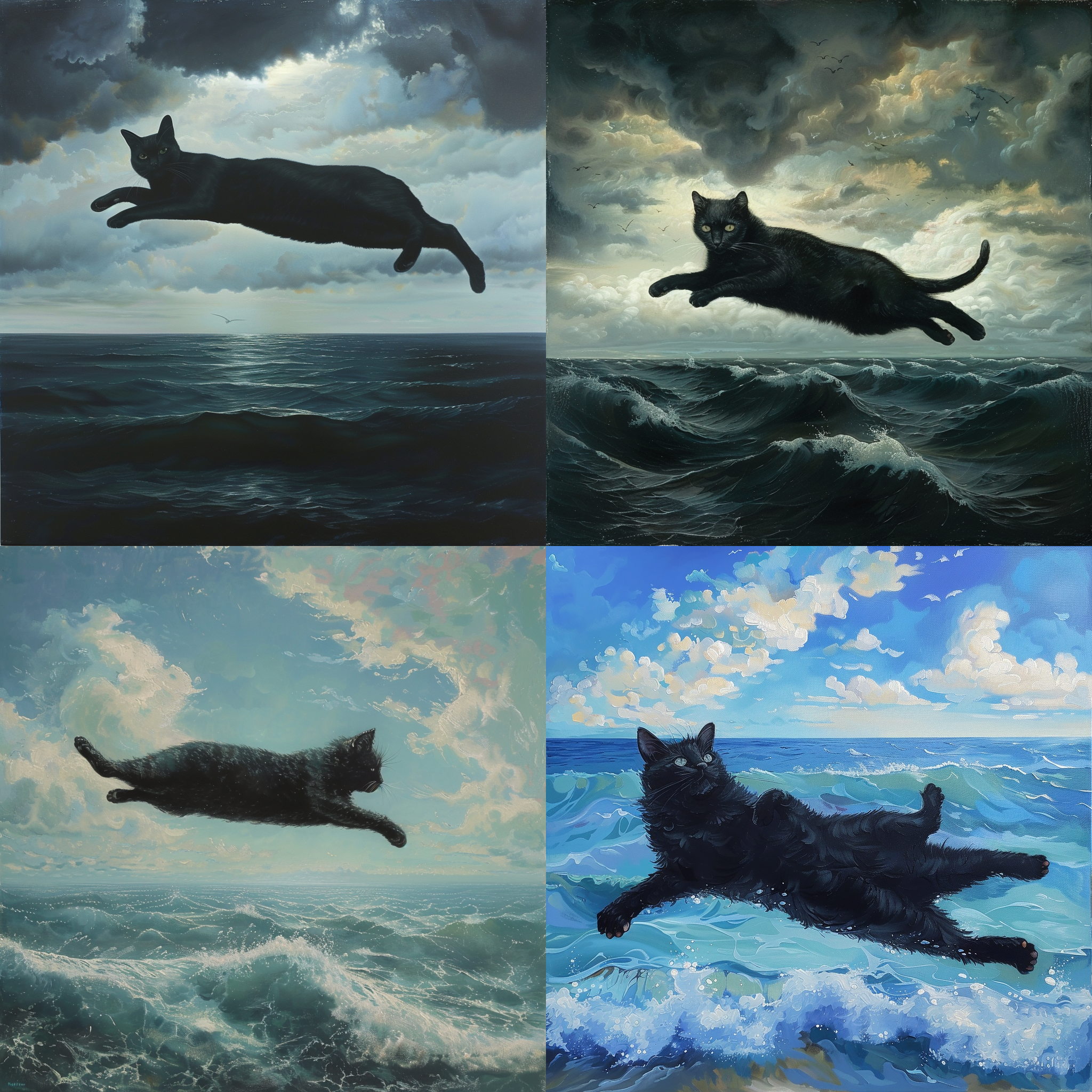 Black cat laying on an ocean is airborne --seed 998011187 --ar 1:1 --v 6 | 2024-03-17T04:02:57Z | |