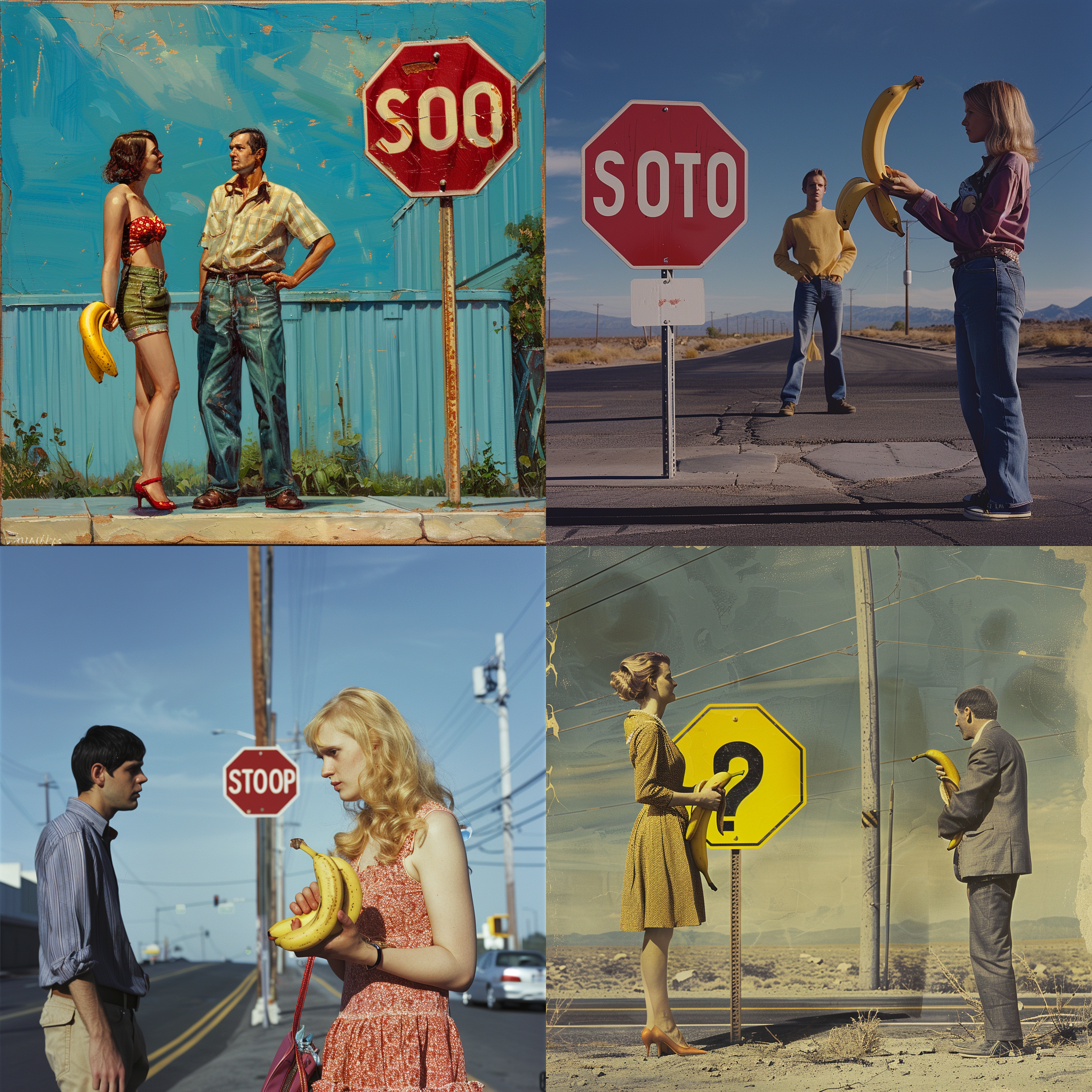 A woman is holding a banana by a man on a stop sign --seed 726497291 --ar 1:1 --v 6 | 2024-03-17T04:14:53Z | |