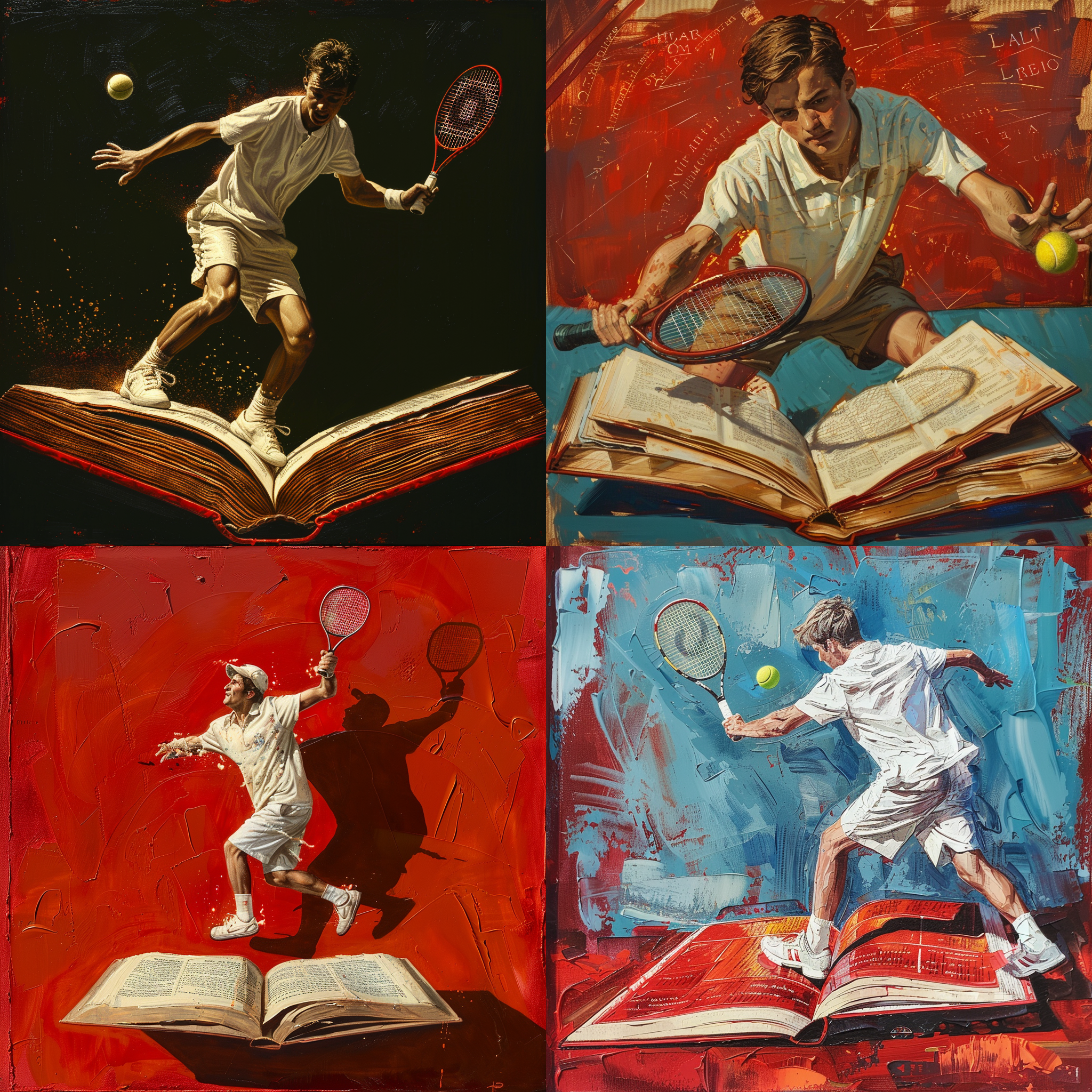A young man playing tennis on a red open book --seed 2873865850 --ar 1:1 --v 6 | 2024-03-17T04:19:09Z | |