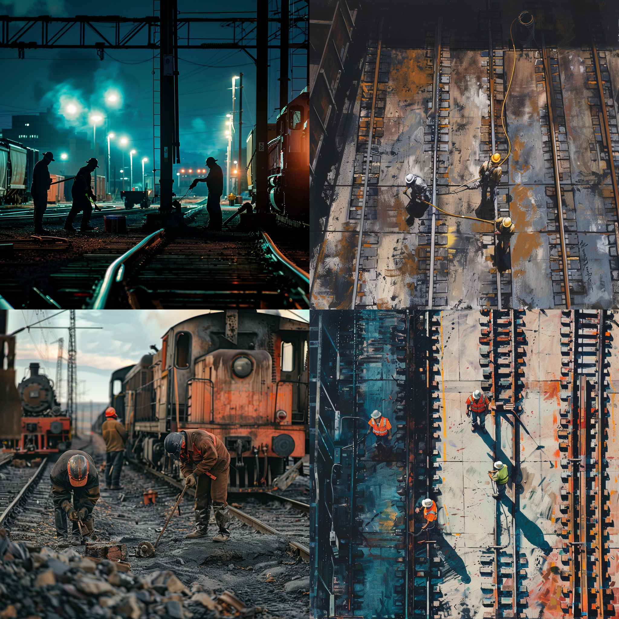 Four people working at a train yard --seed 329656733 --ar 1:1 --v 6 | 2024-03-17T04:06:26Z | |