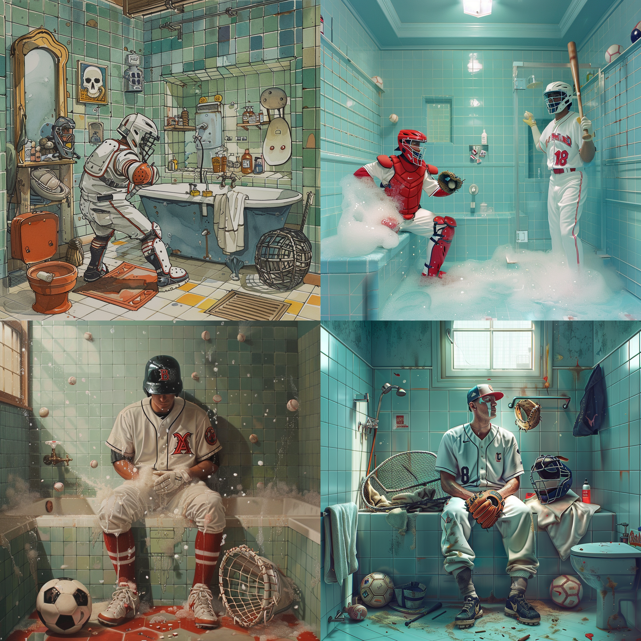 A baseball player is getting a bath room with a soccer goalie --seed 3570662691 --ar 1:1 --v 6 | 2024-03-17T04:02:39Z | |