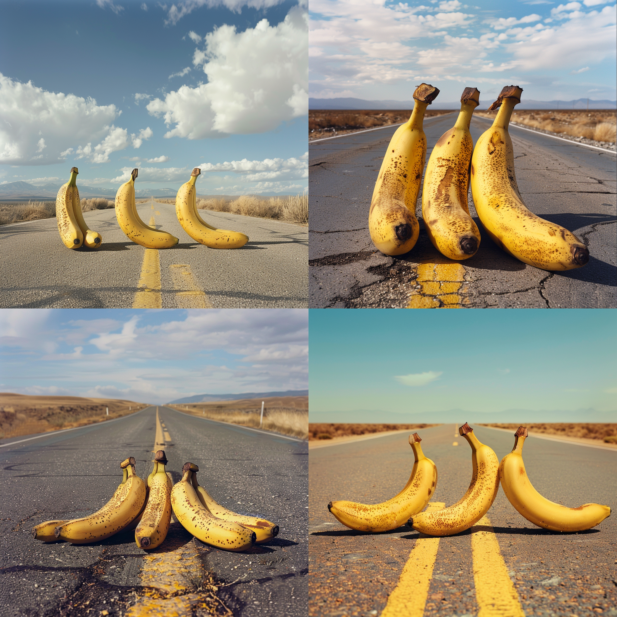 Three bananas sitting on a plains road --seed 88952781 --ar 1:1 --v 6 | 2024-03-17T04:15:43Z | |