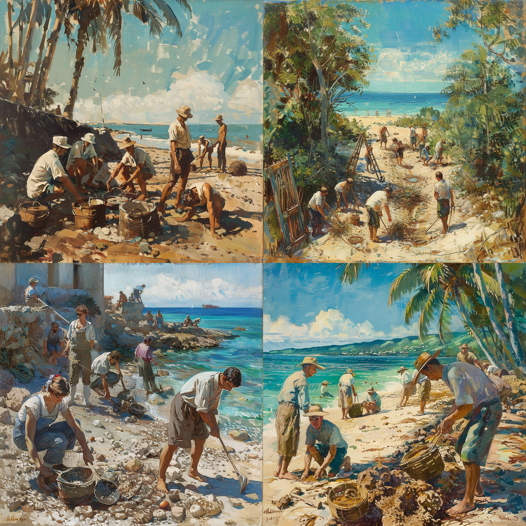 A group of people work near a beach --seed 2415300363 --ar 1:1 --v 6 | 2024-03-17T04:04:20Z | |