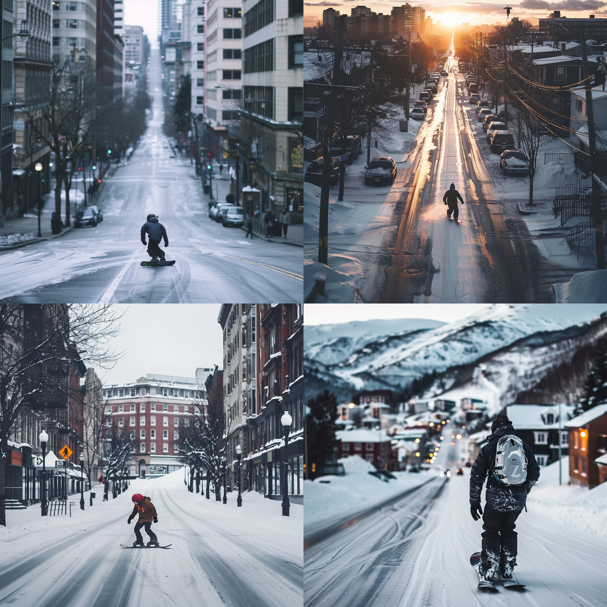 A person snowboarding by themselves down a wide street --seed 2238124698 --ar 1:1 --v 6 | 2024-03-17T06:08:05Z | |