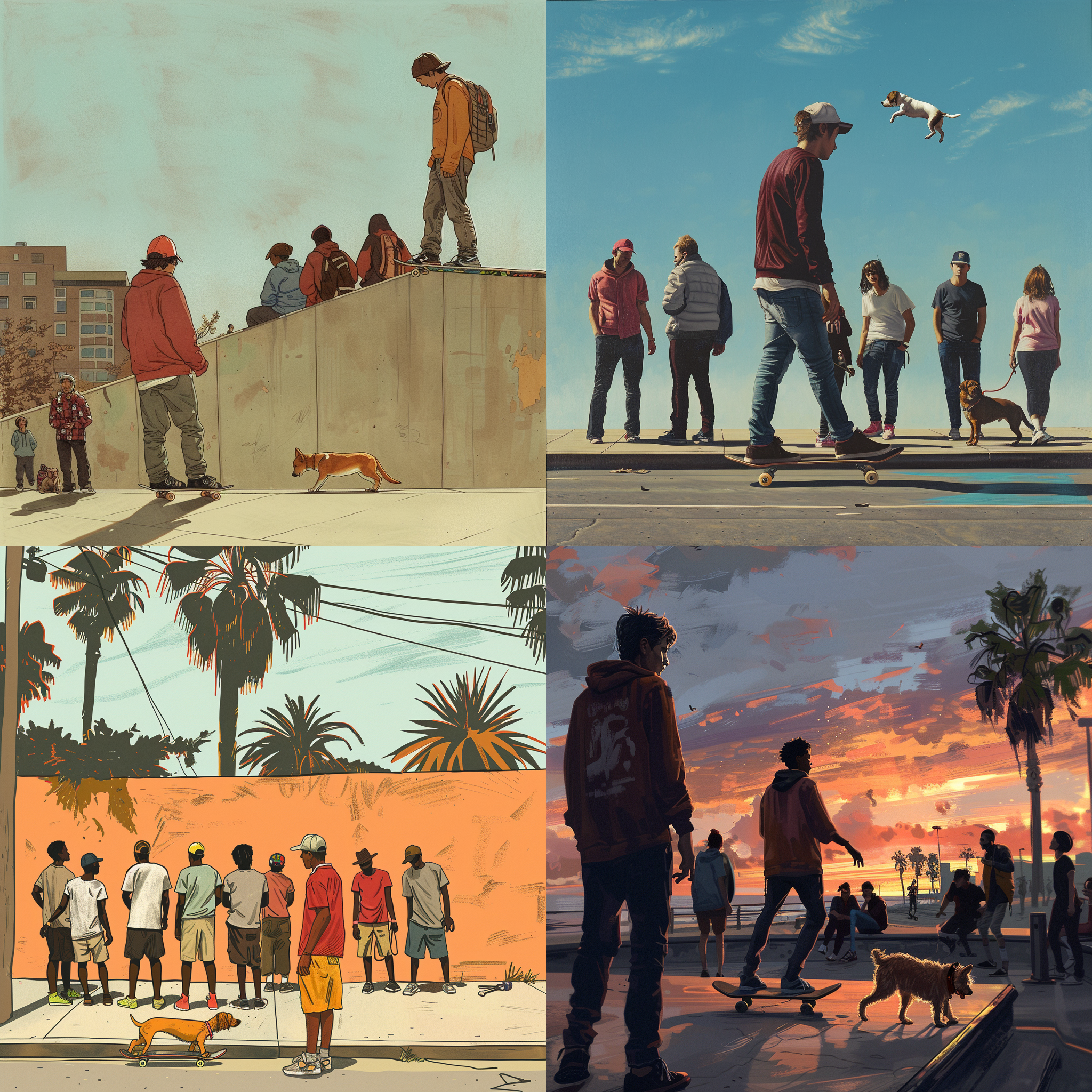 A group of people watching a skateboarder walking his dog --seed 1683473975 --ar 1:1 --v 6 | 2024-03-17T06:21:23Z | |