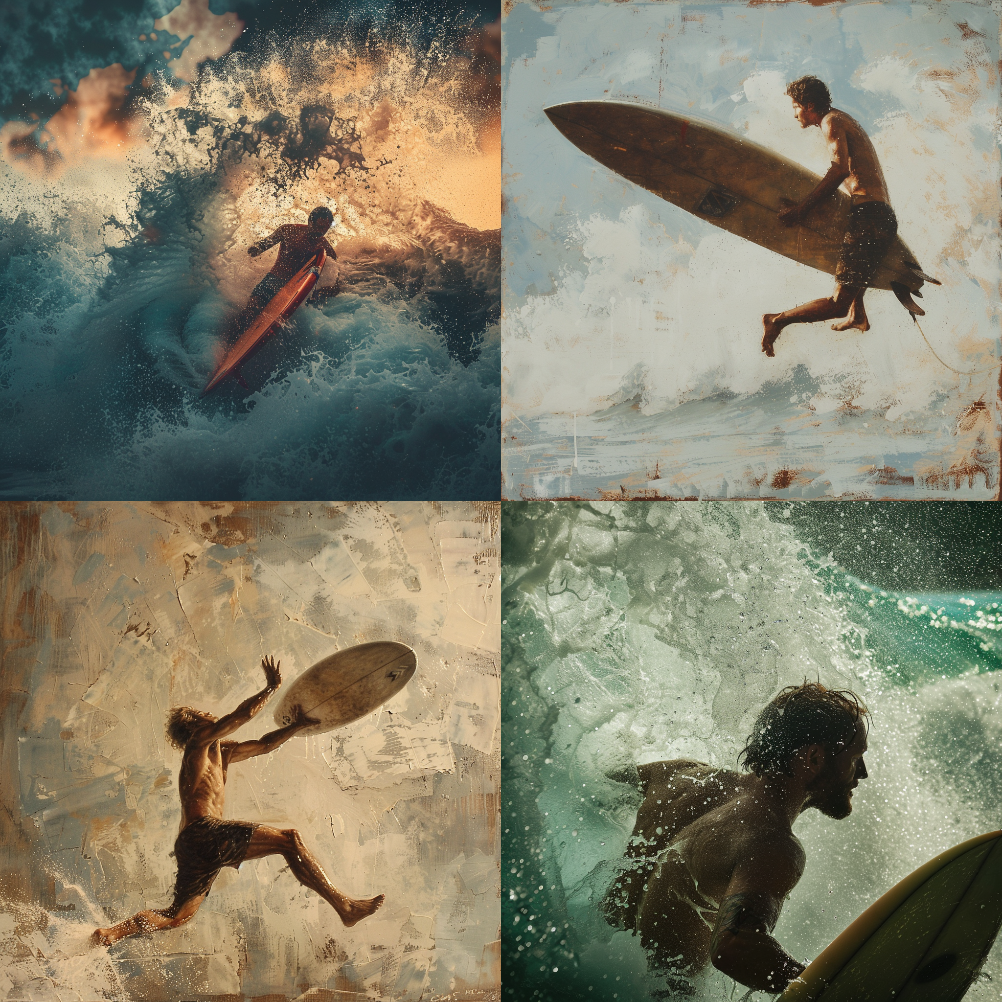 A man is holding a surfboard being thrown into the side of it --seed 4064239087 --ar 1:1 --v 6 | 2024-03-17T06:21:58Z | |
