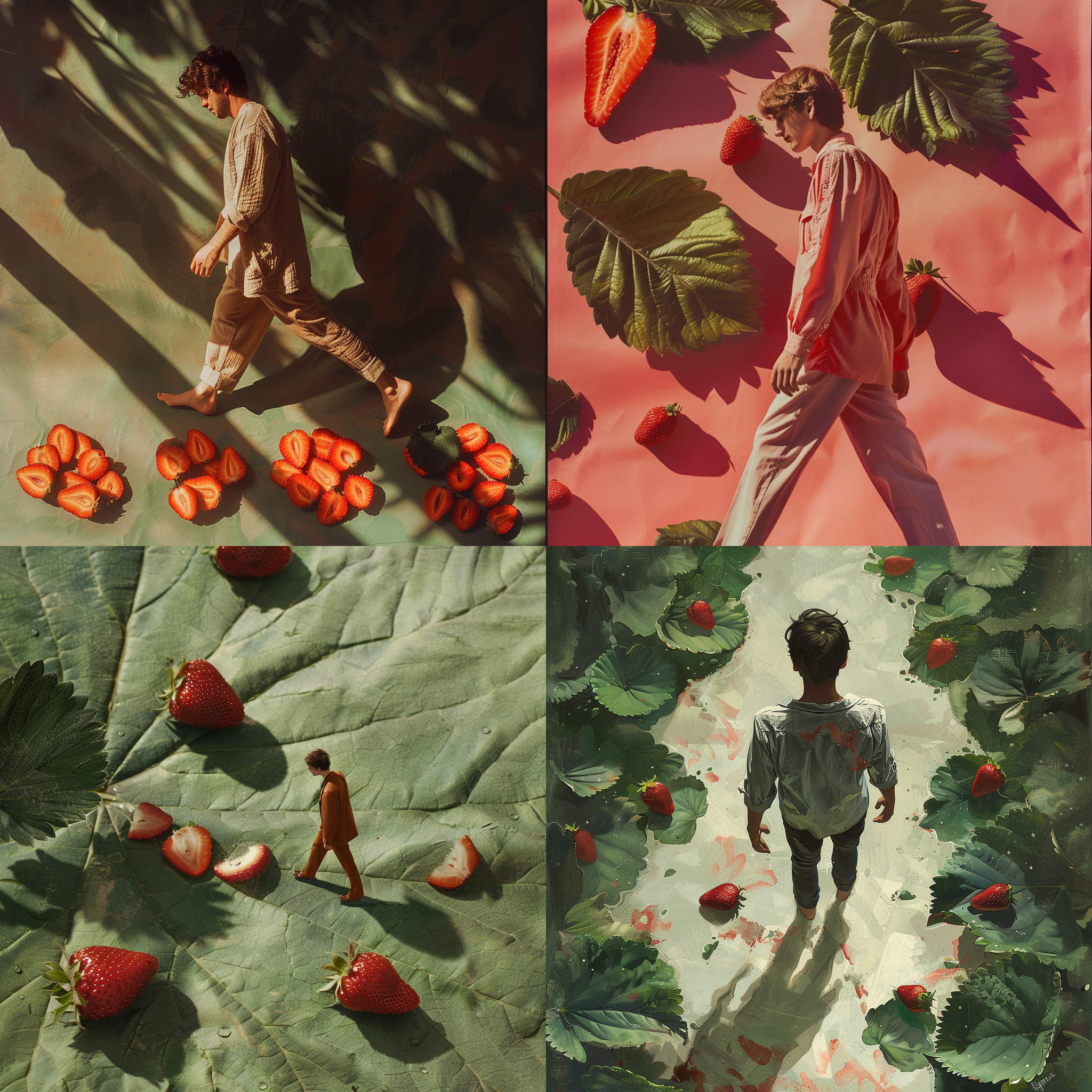 A young man is causally walking down a leaf and sliced strawberries --seed 1319774594 --ar 1:1 --v 6 | 2024-03-17T10:43:38Z | |