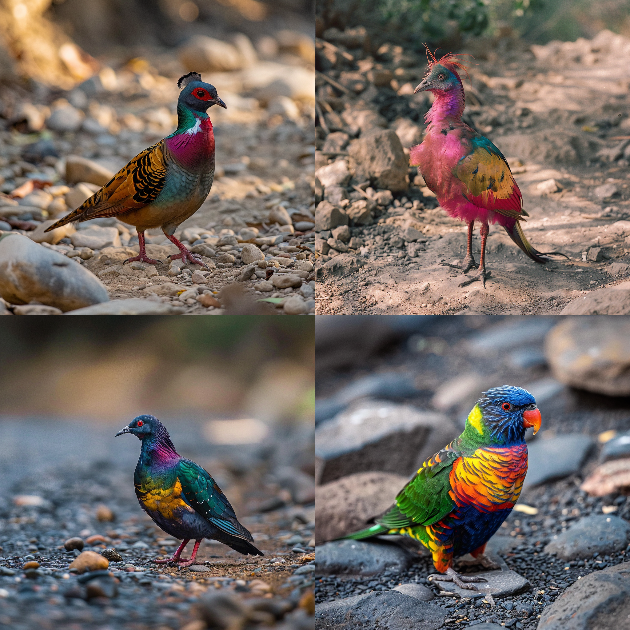 A colorful bird stands on a rock covered dirt road --seed 349954097 --ar 1:1 --v 6 | 2024-03-17T10:44:57Z | |