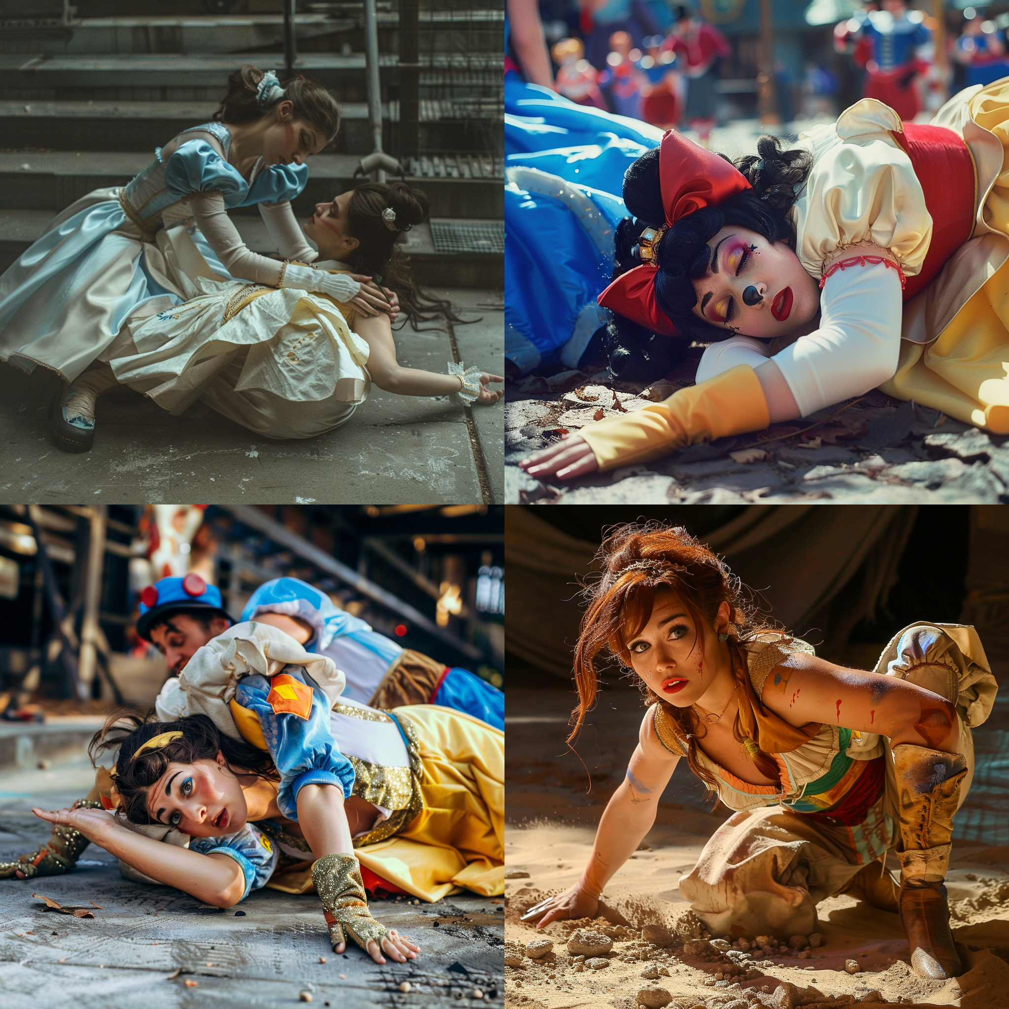 A woman dressed as Disney characters wrestle on the ground --seed 618090647 --ar 1:1 --v 6 | 2024-03-17T10:49:07Z | |