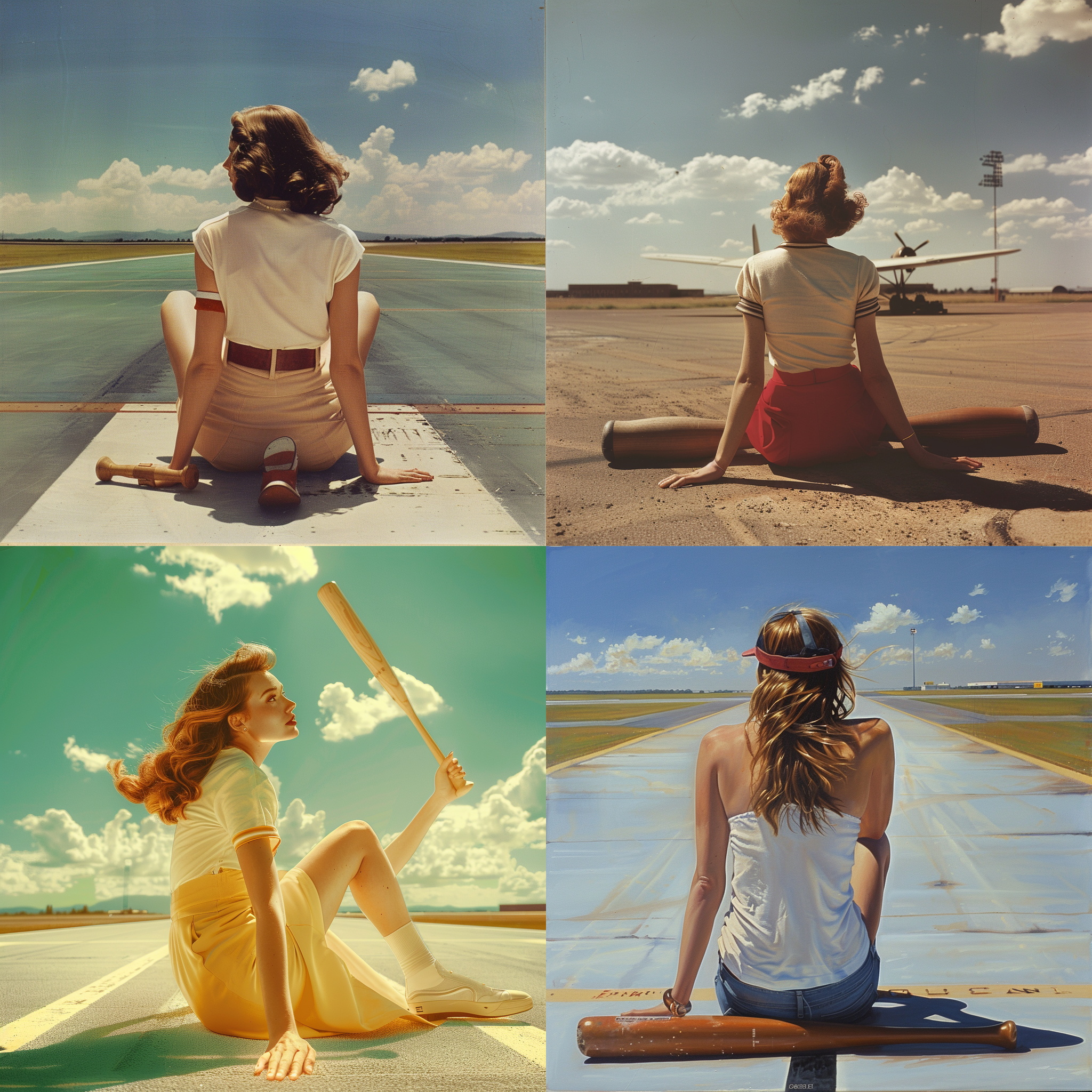 A woman sitting on a runway and getting ready to swing at ball game --seed 3731304719 --ar 1:1 --v 6 | 2024-03-17T10:48:55Z | |