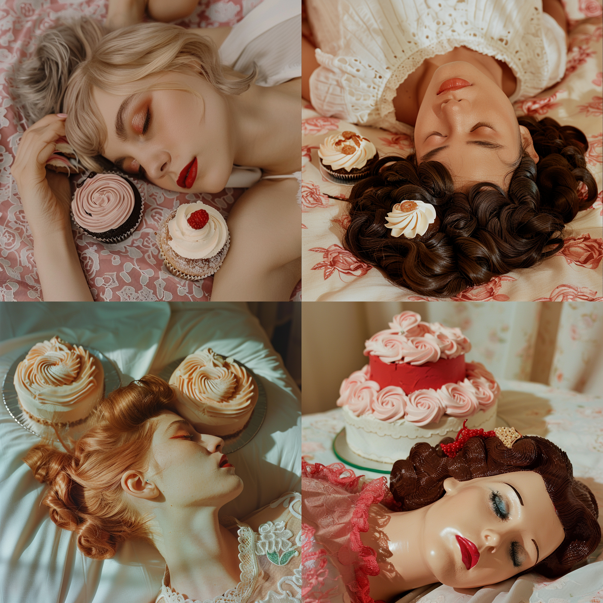 A close-up photo of two cakes on a fake haircut from a woman lying on the bed --seed 1746284534 --ar 1:1 --v 6 | 2024-03-17T10:36:35Z | |