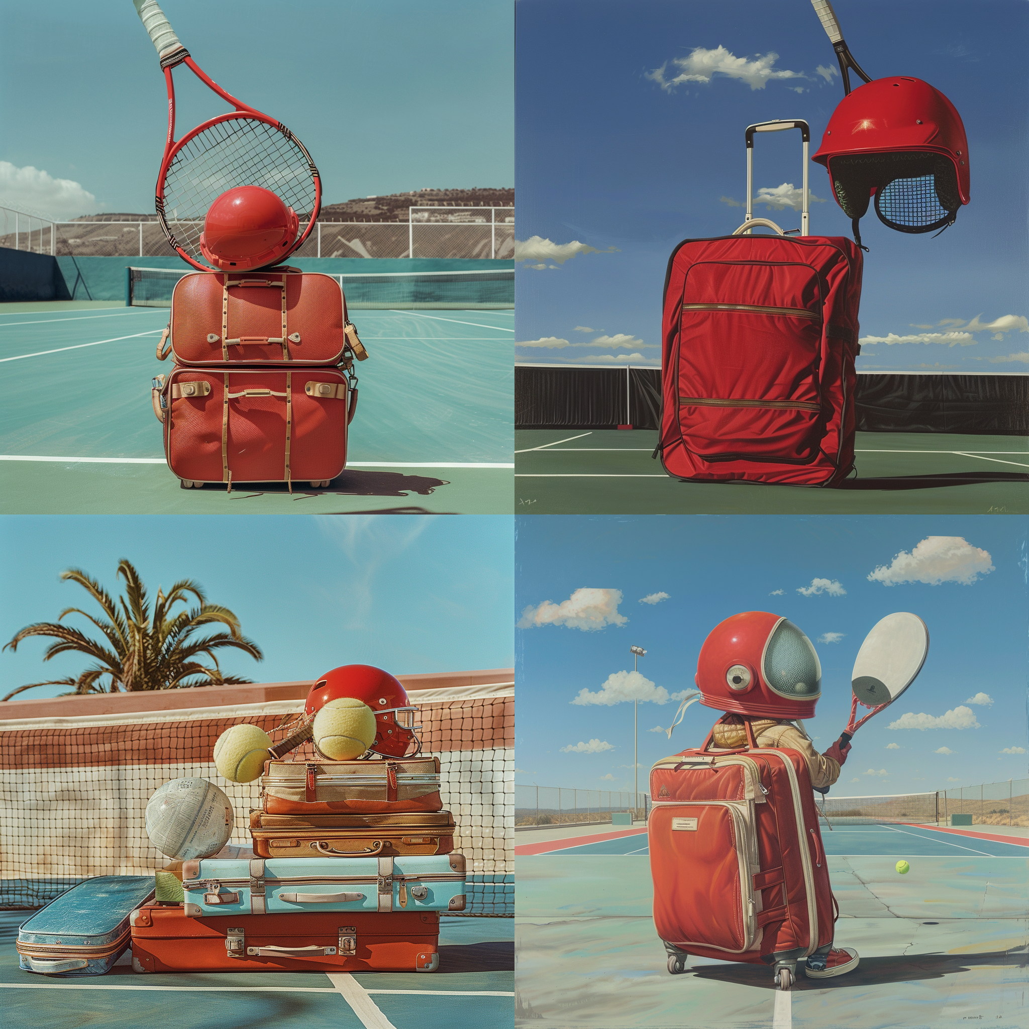 Large packed luggage in a red helmet swinging a tennis court --seed 3394683314 --ar 1:1 --v 6 | 2024-03-17T10:49:39Z | |