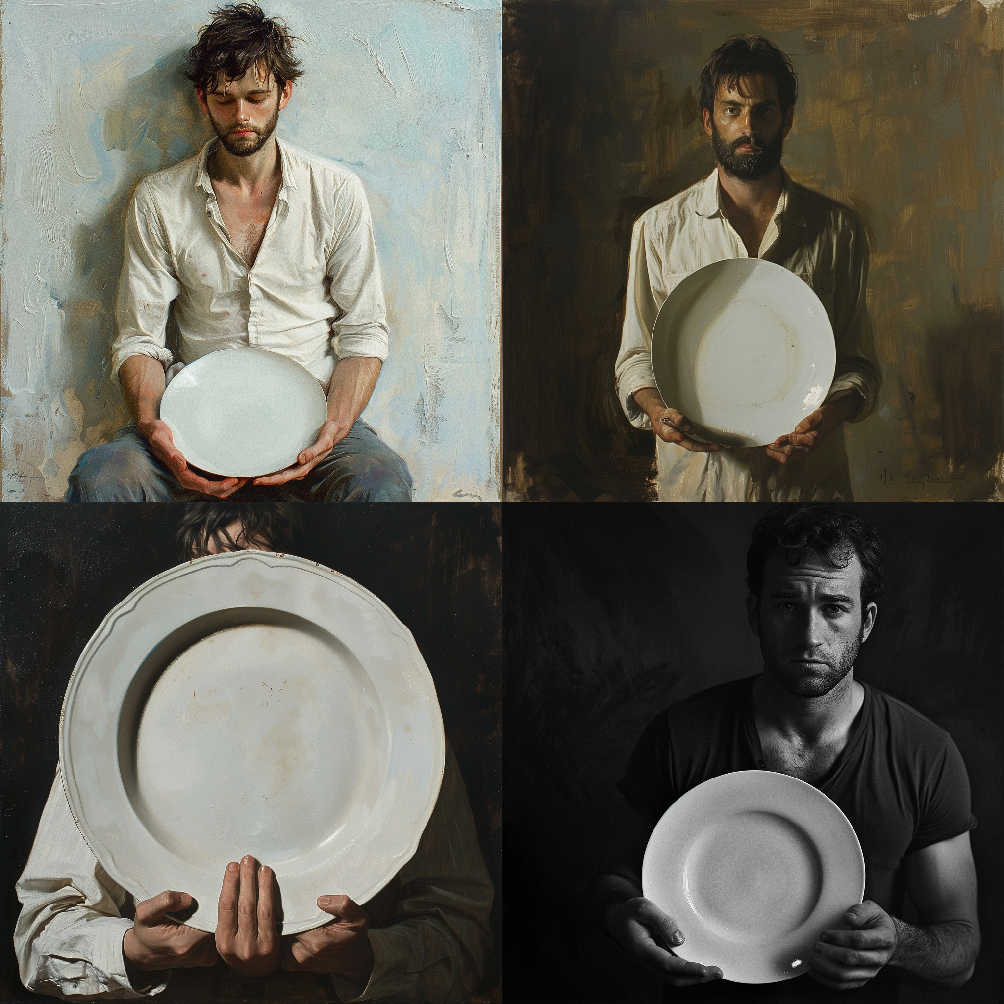 A man and a white plate --seed 3810699118 --ar 1:1 --v 6 | 2024-03-17T10:39:52Z | |