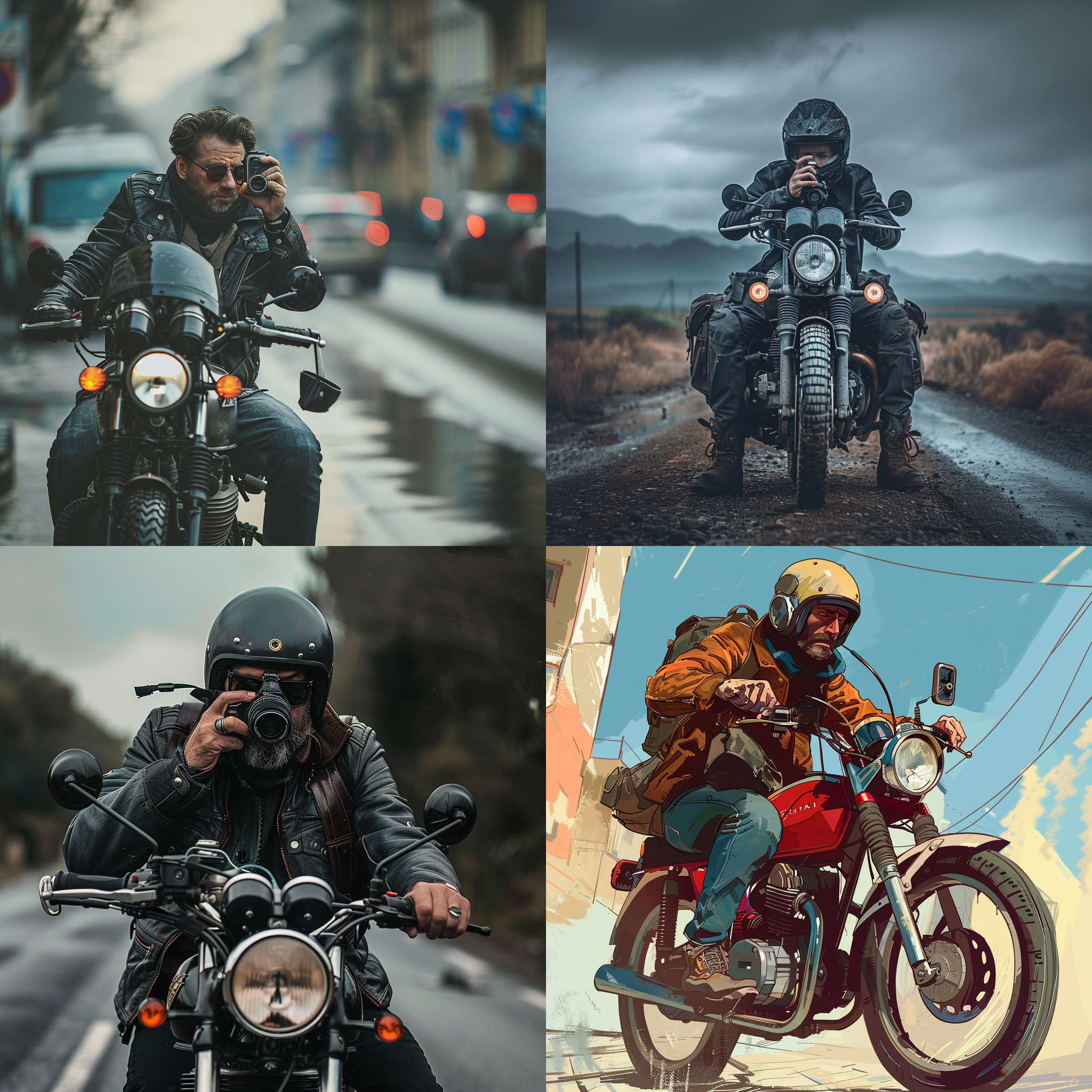 The motorcyclist is adjusting a camera and making a call on his bike --seed 2245521816 --ar 1:1 --v 6 | 2024-03-17T10:46:47Z | |