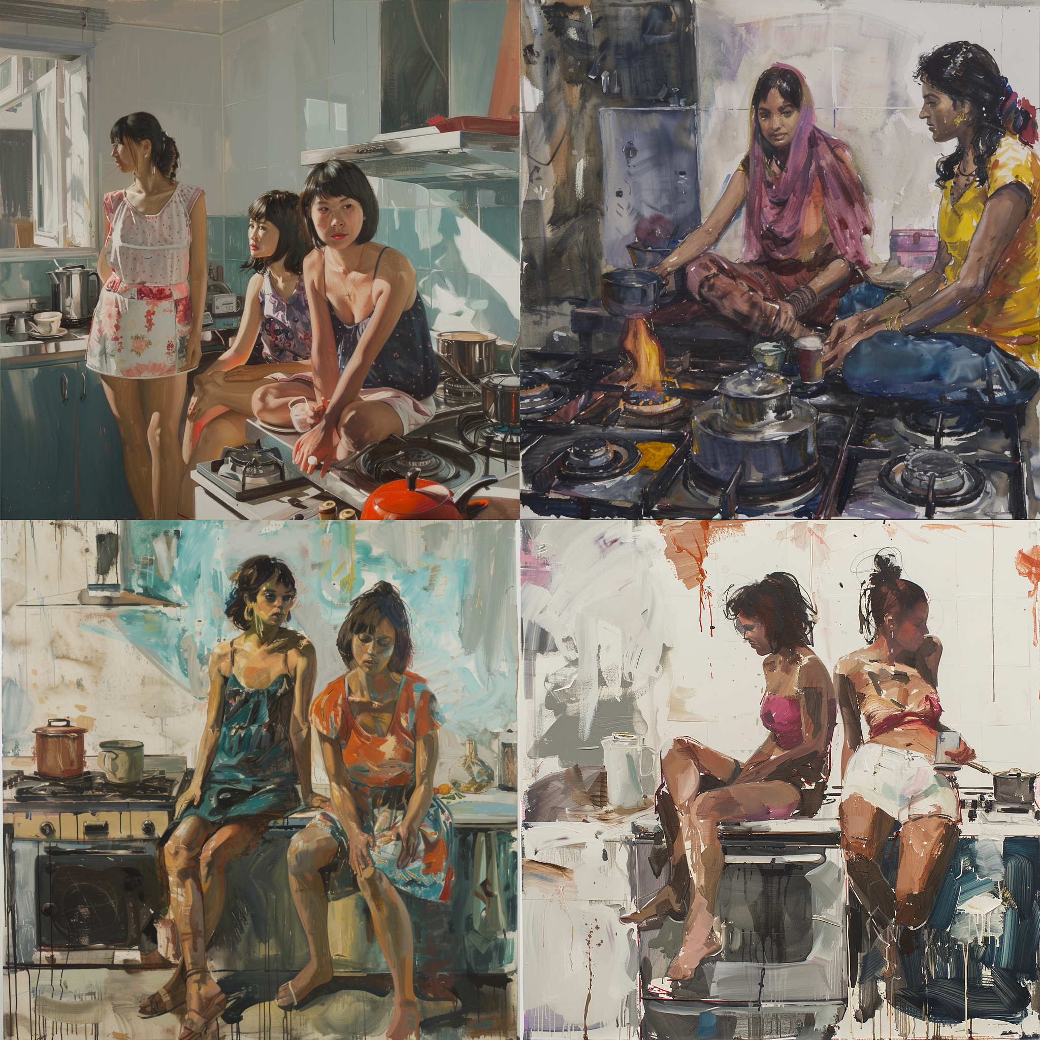 A group of people sitting on stove tops. two females standing next to cup --seed 2217376531 --ar 1:1 --v 6 | 2024-03-17T10:48:27Z | |