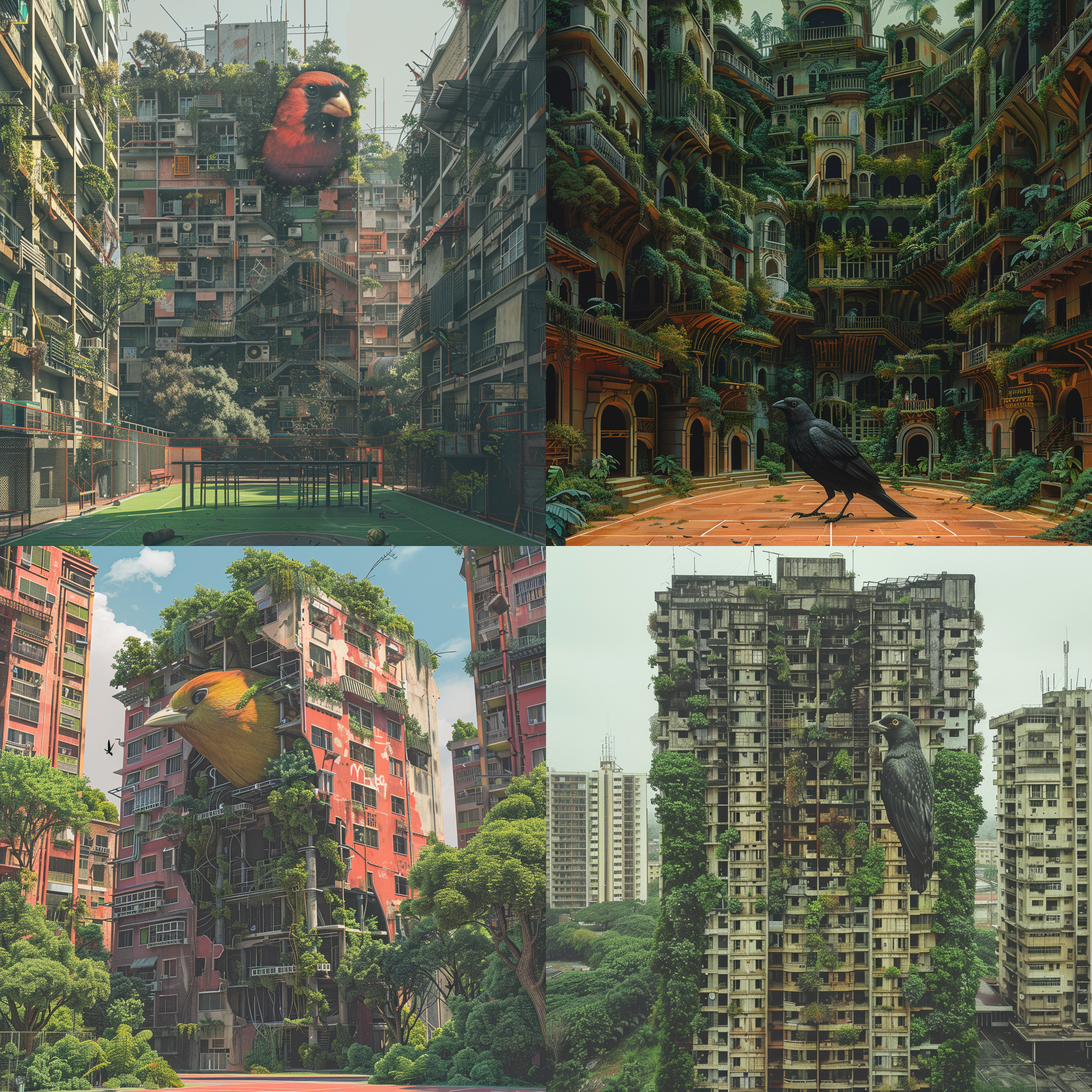 A very big buildings that have plant growth growing inside of a bird on a court --seed 3052676437 --ar 1:1 --v 6 | 2024-03-17T10:41:36Z | |