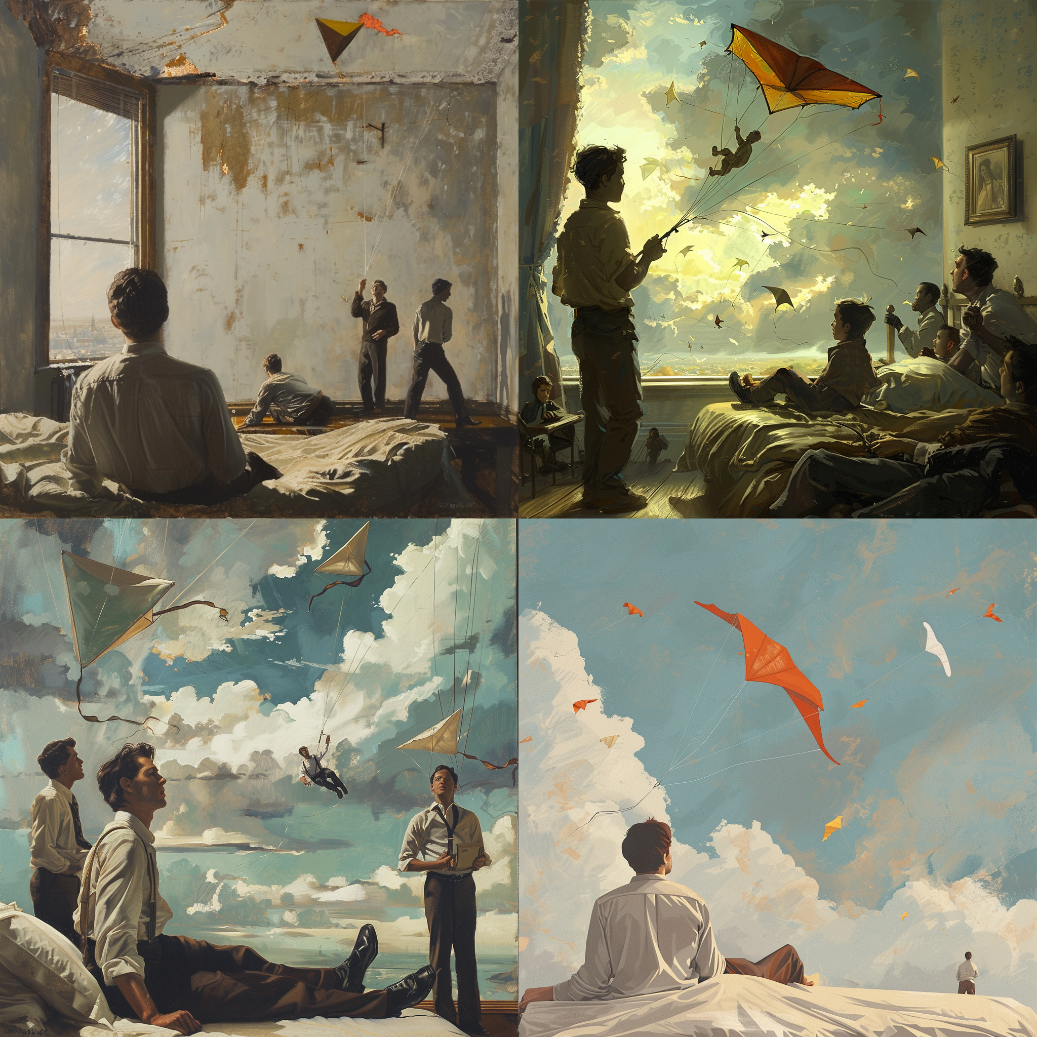 A man is sitting on a bed A group of people flying a kite --seed 418047379 --ar 1:1 --v 6 | 2024-03-17T10:45:27Z | |