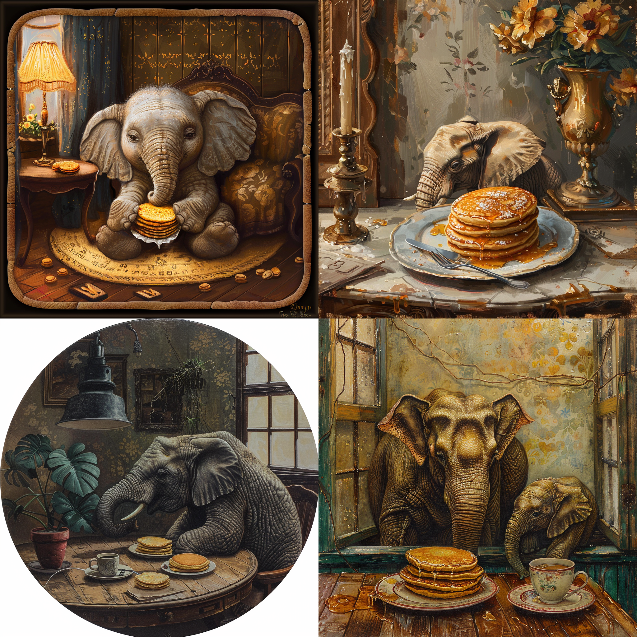 A couple of pancakes on a mouse pad. an elephant in a room --seed 751131000 --ar 1:1 --v 6 | 2024-03-17T10:37:32Z | |