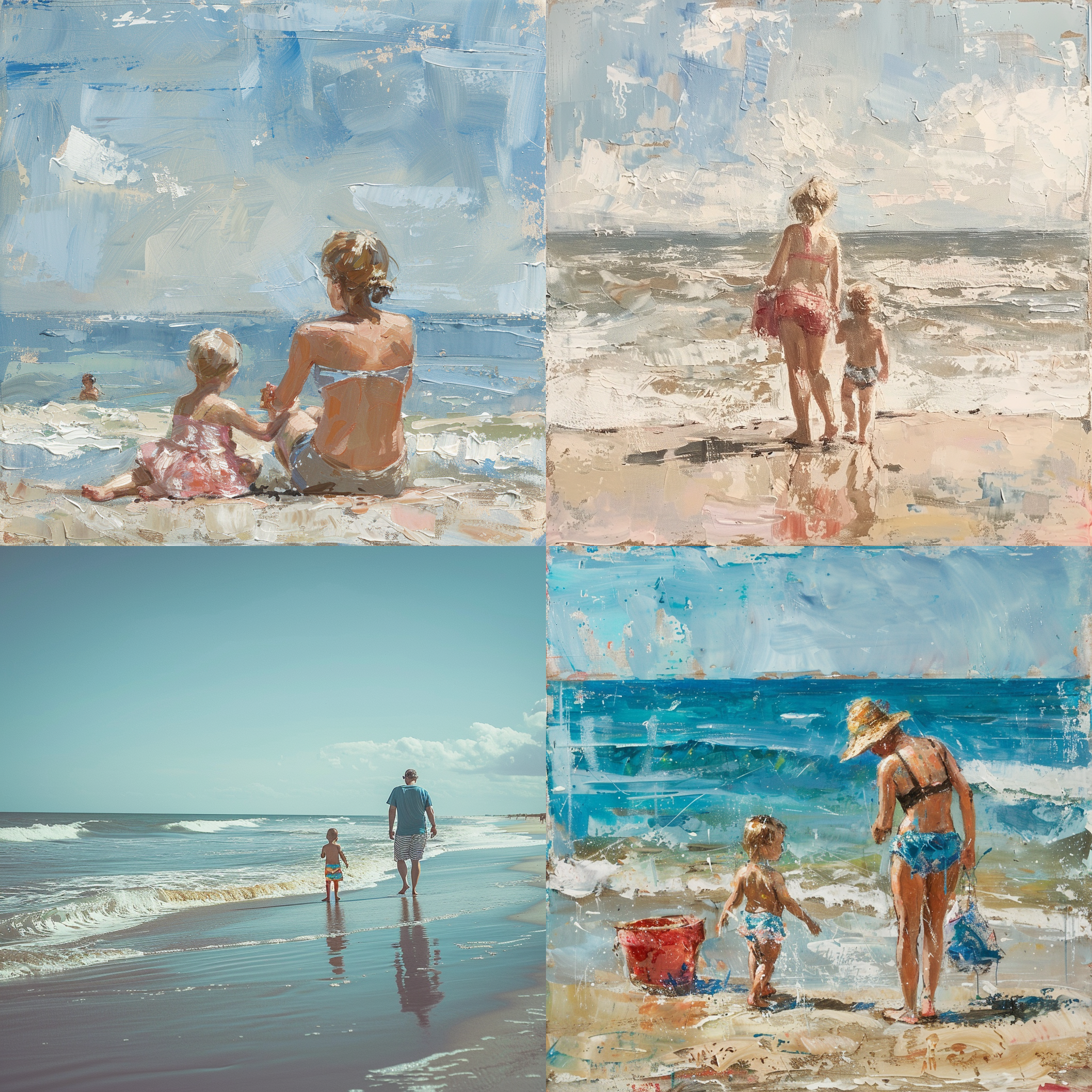 Two adult and child at the beach --seed 1351633585 --ar 1:1 --v 6 | 2024-03-17T10:45:33Z | |