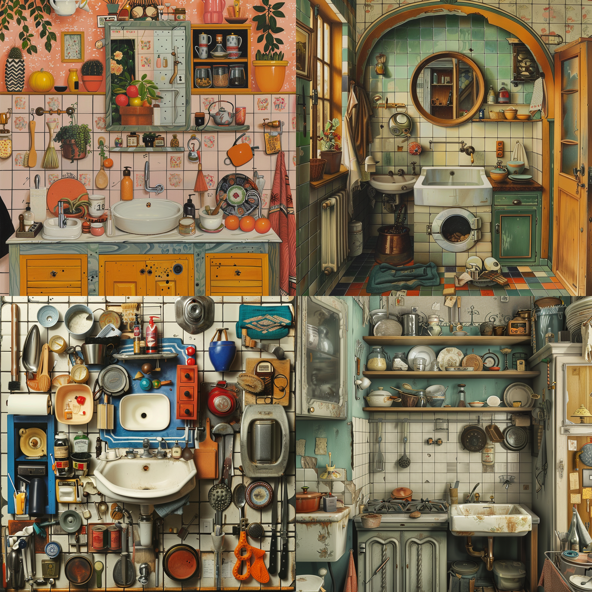 A bathroom in a kitchen. an image of a variety of objects --seed 4277735554 --ar 1:1 --v 6 | 2024-03-17T10:44:52Z | |