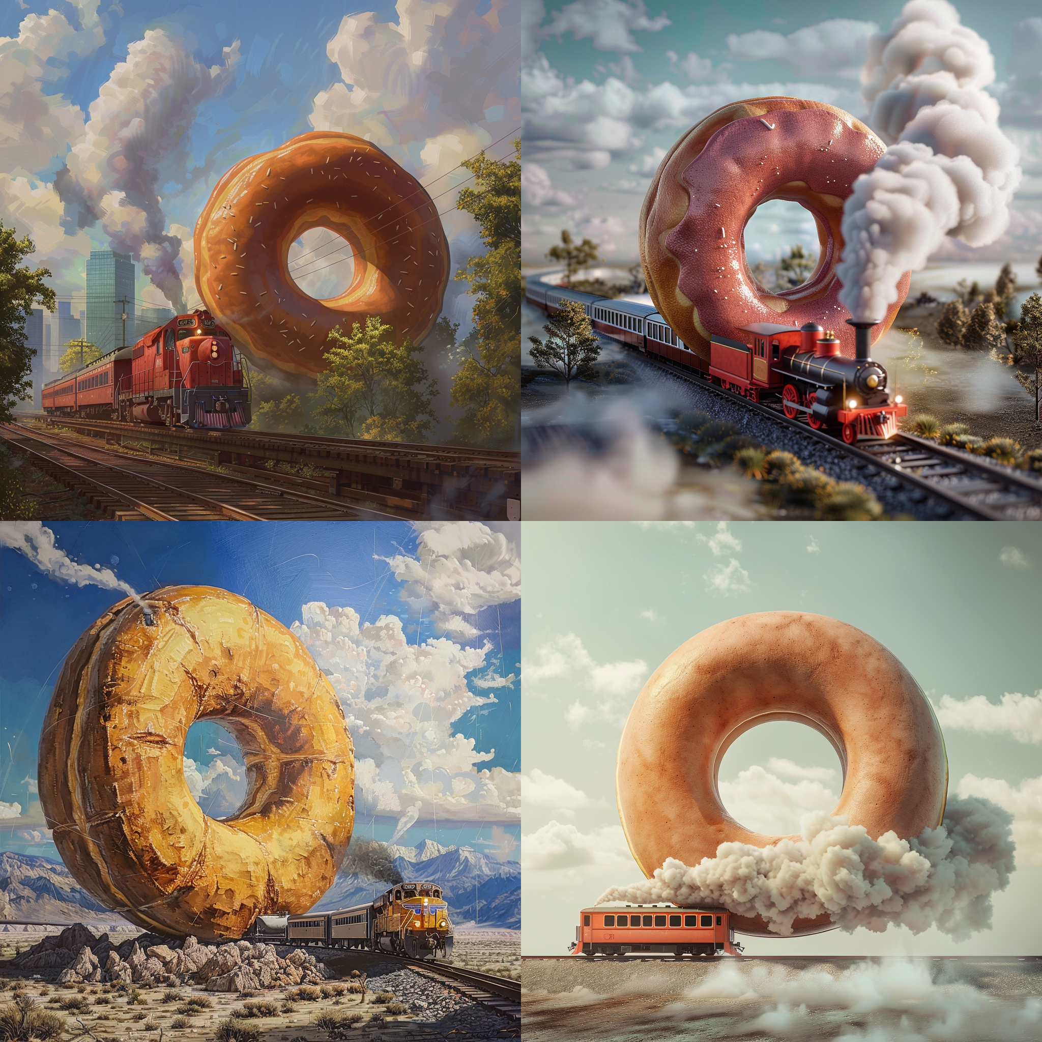 A train pulling up to a large faux doughnut --seed 2036470039 --ar 1:1 --v 6 | 2024-03-17T10:42:16Z | |