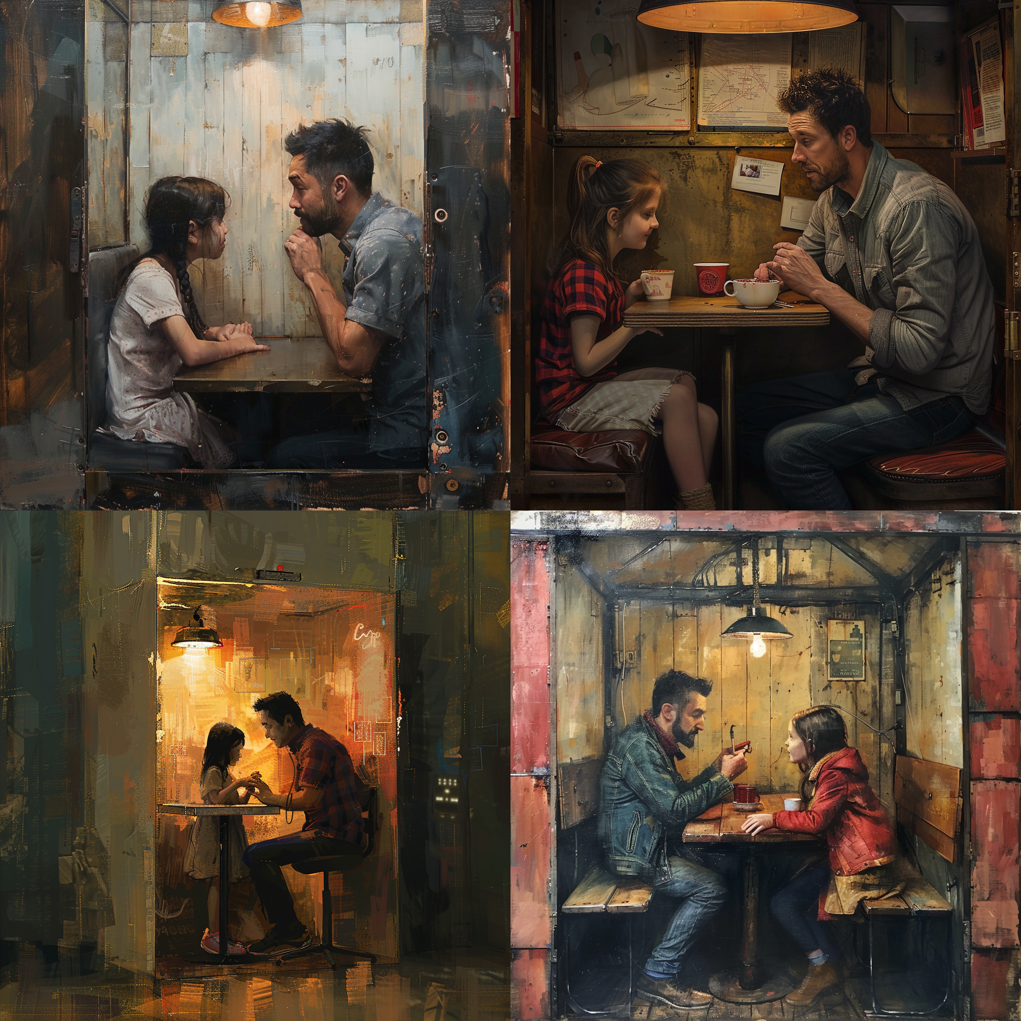 A dad teaching a girl in a booth --seed 1472273225 --ar 1:1 --v 6 | 2024-03-17T10:43:08Z | |