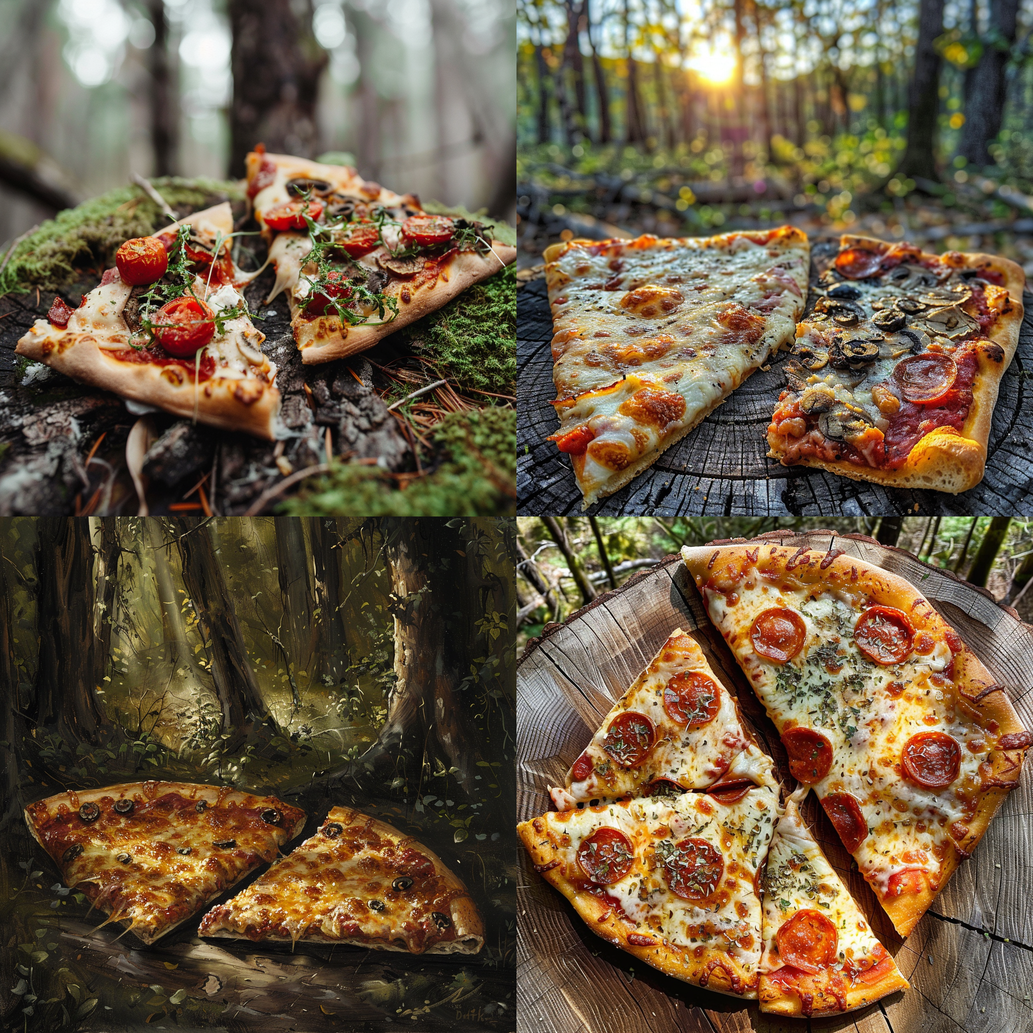 Two pieces of pizza from a forest --seed 2563972839 --ar 1:1 --v 6 | 2024-03-17T10:50:17Z | |