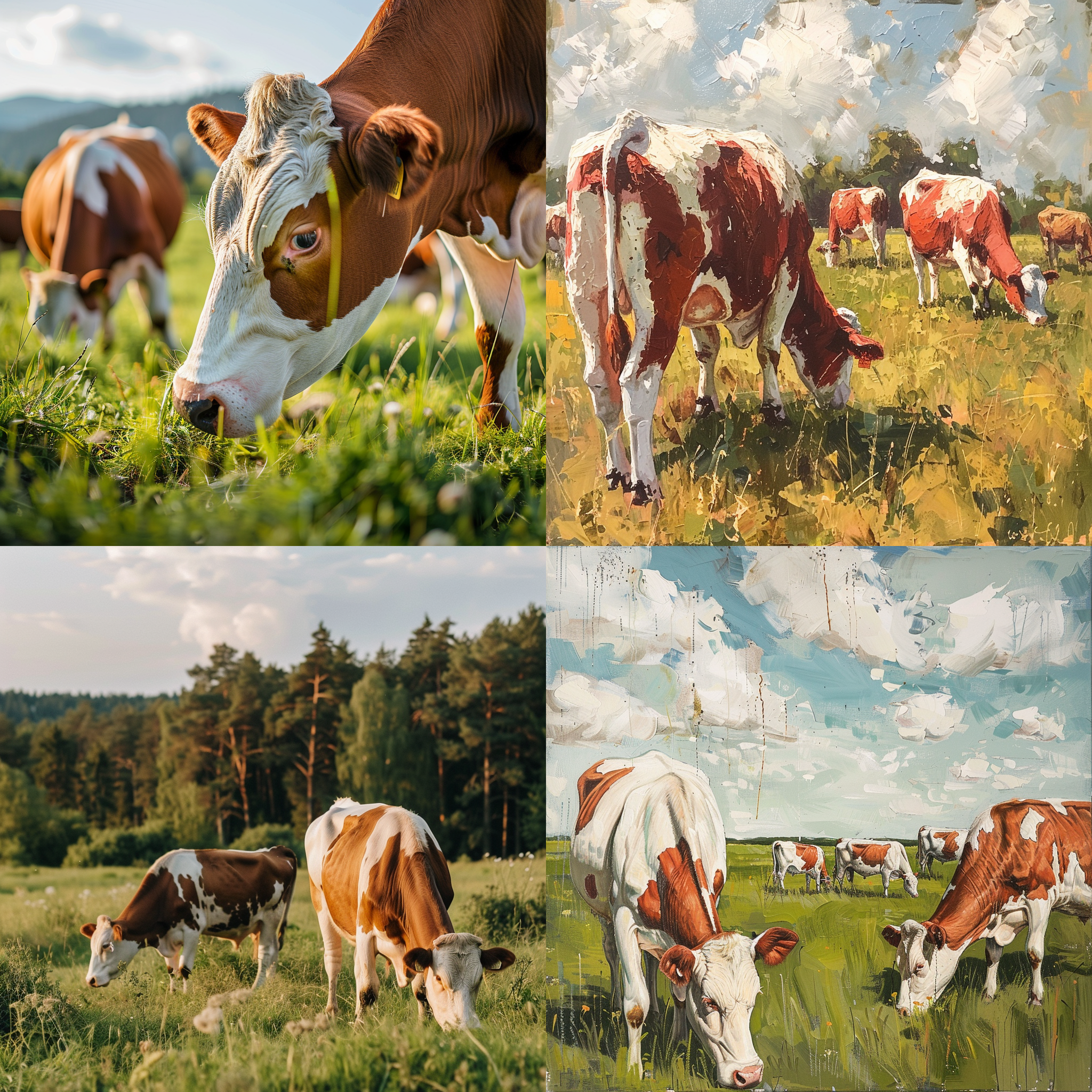 Red and white cows grazing in a field looking for food on it --seed 3315628249 --ar 1:1 --v 6 | 2024-03-17T10:50:30Z | |