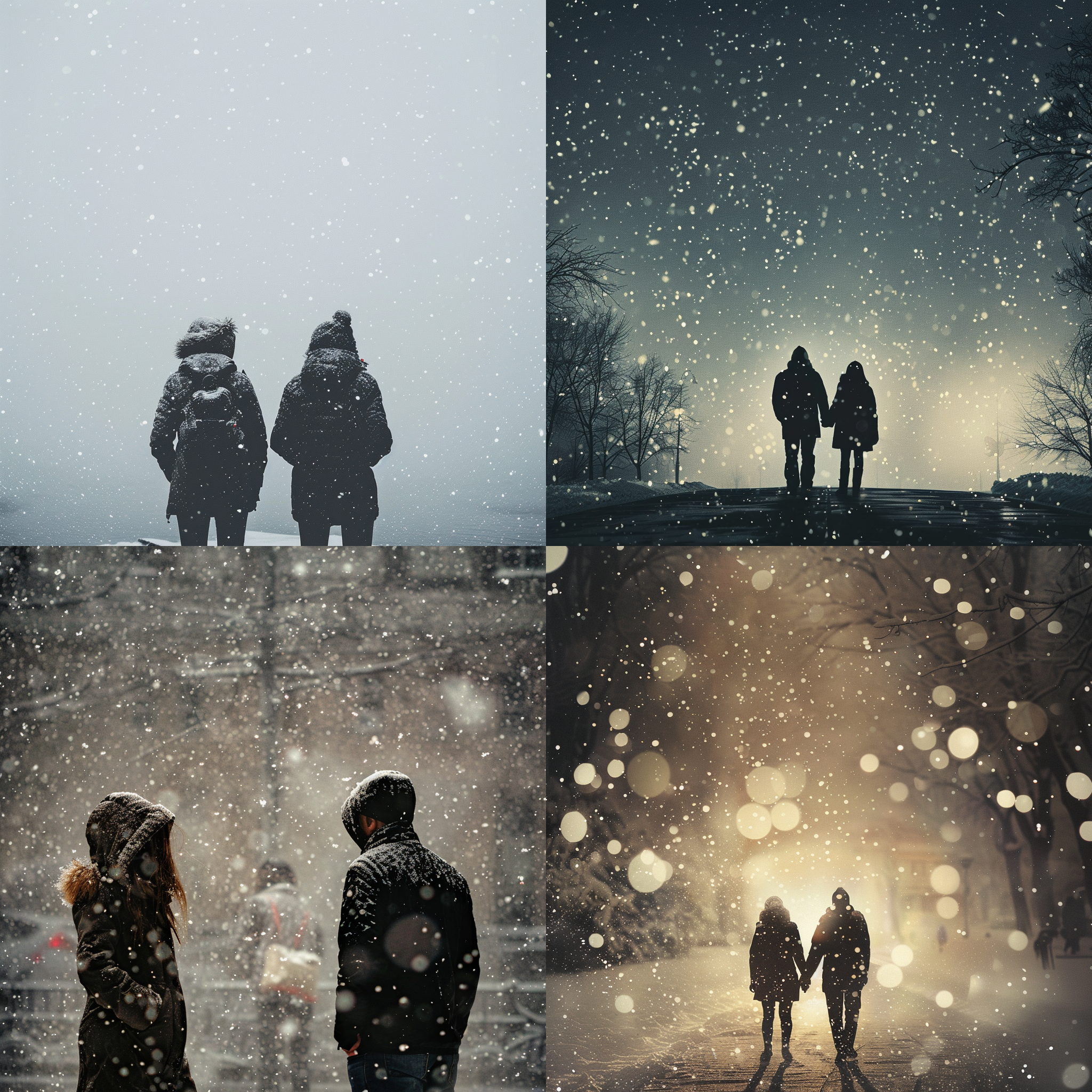 Two people are standing in falling snow --seed 4145089294 --ar 1:1 --v 6 | 2024-03-17T10:44:40Z | |