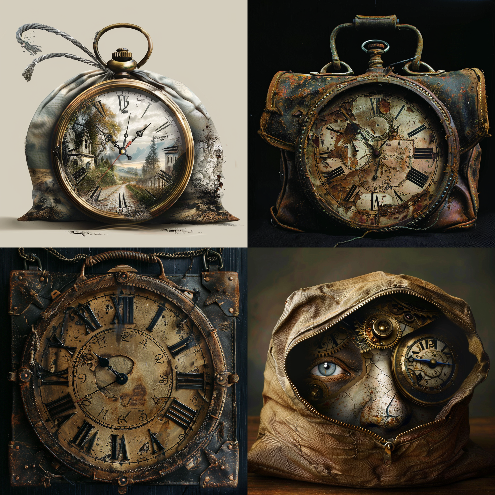 The clock face in a bag --seed 3168624226 --ar 1:1 --v 6 | 2024-03-17T10:48:20Z | |