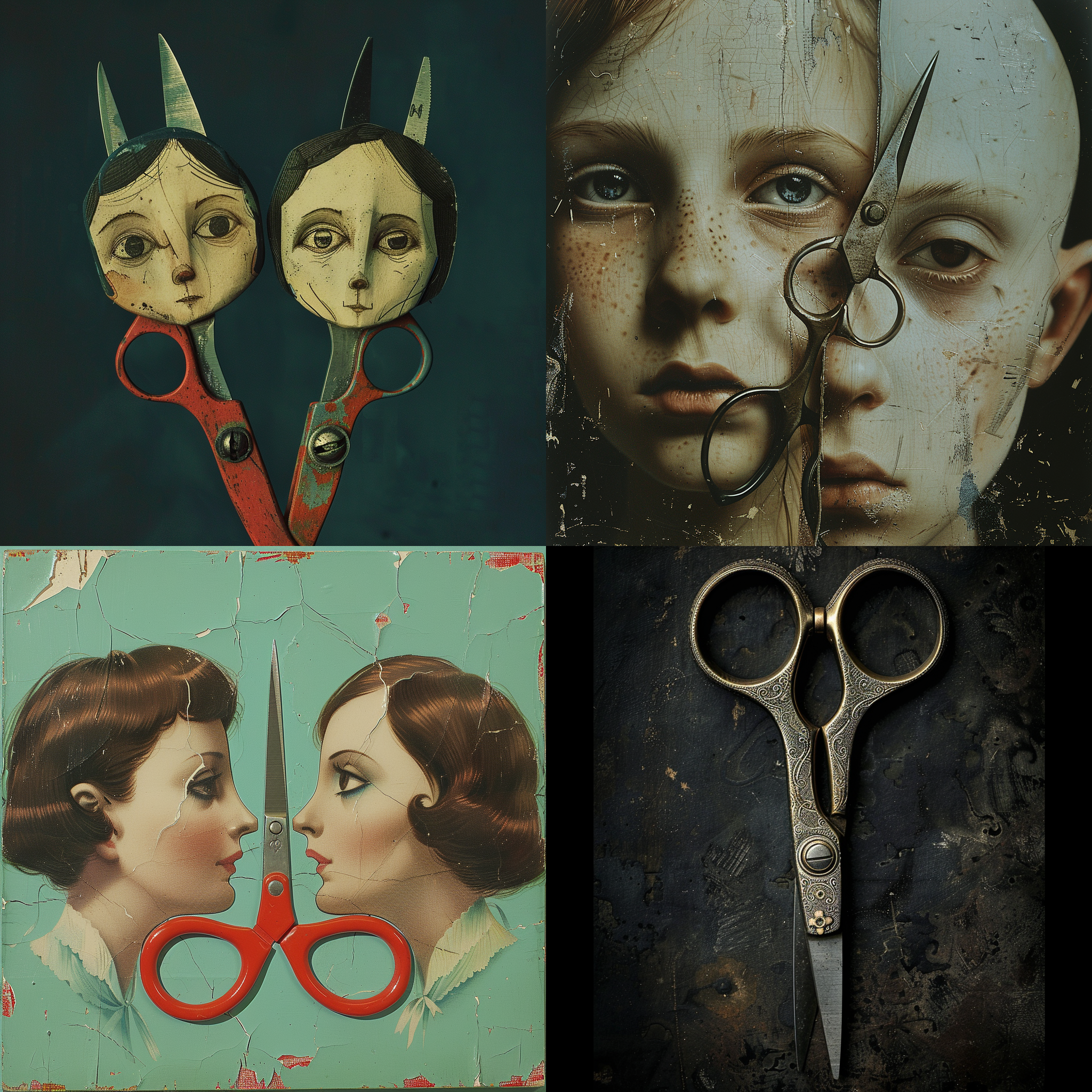 A pair of scissors are other people --seed 1366173391 --ar 1:1 --v 6 | 2024-03-17T10:55:05Z | |