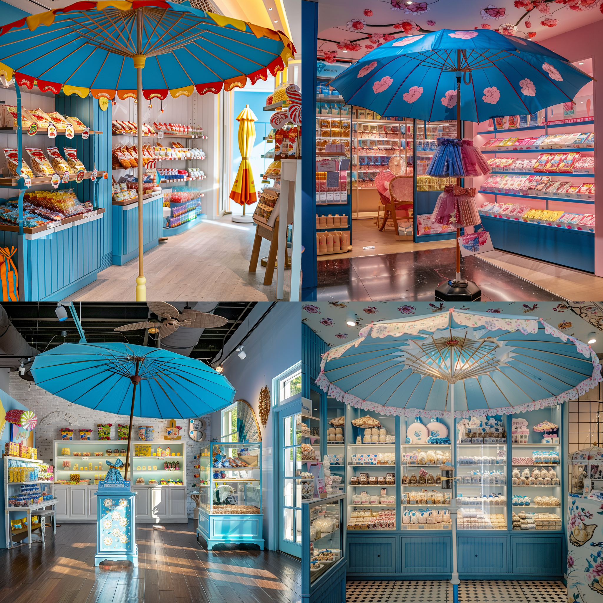 A blue umbrella displaying several candy bar boutiques for sale in a room --seed 3475749991 --ar 1:1 --v 6 | 2024-03-17T10:50:25Z | |