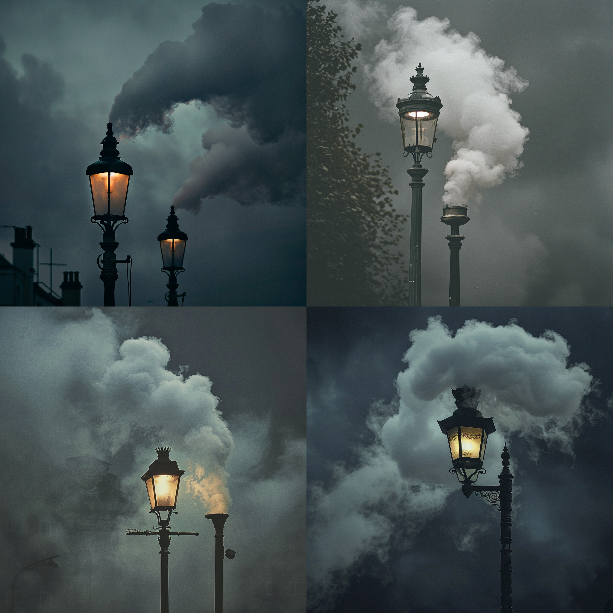 A street light with two streams of smoke coming from its chimney --seed 1340495404 --ar 1:1 --v 6 | 2024-03-17T10:43:38Z | |