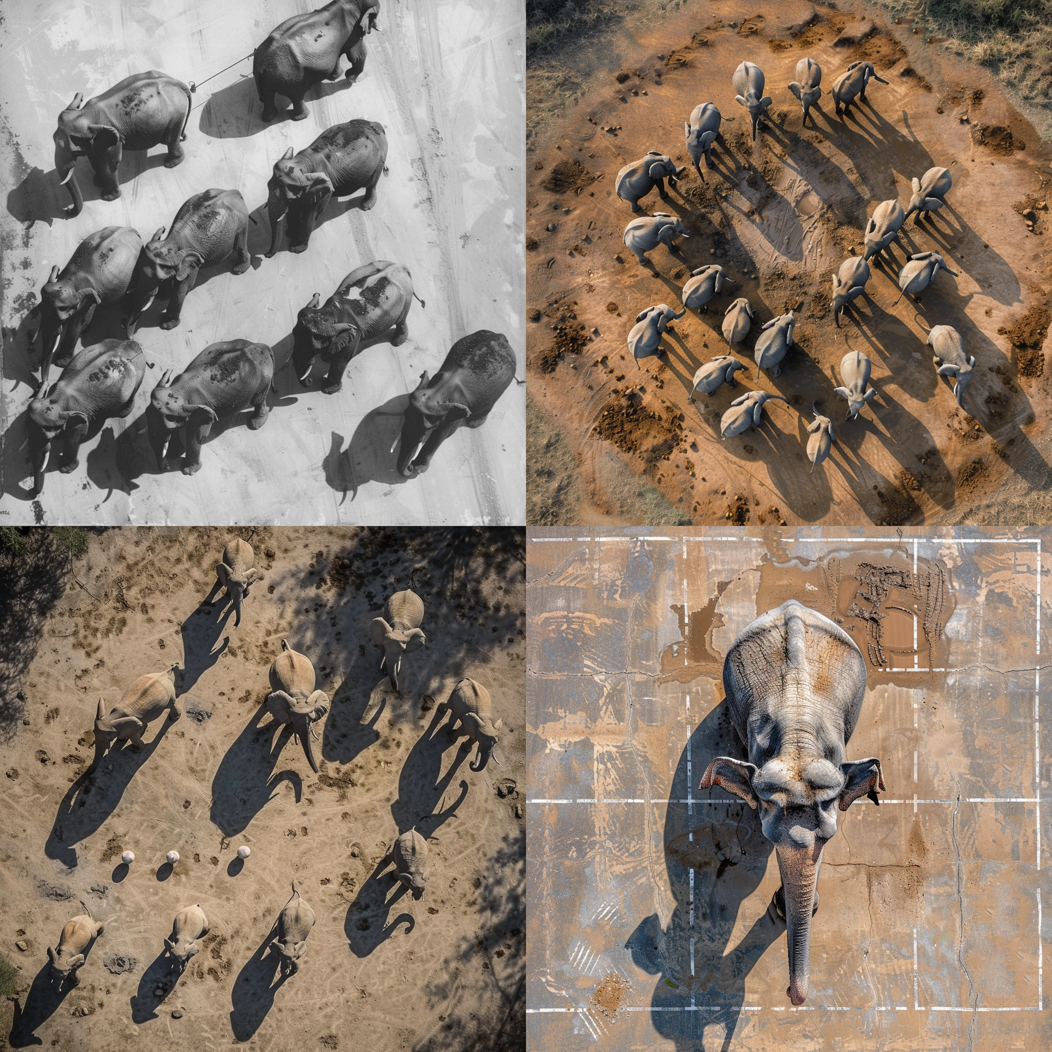 An overhead view of elephant standing in line for an incoming pitch --seed 3438212515 --ar 1:1 --v 6 | 2024-03-17T10:42:25Z | |