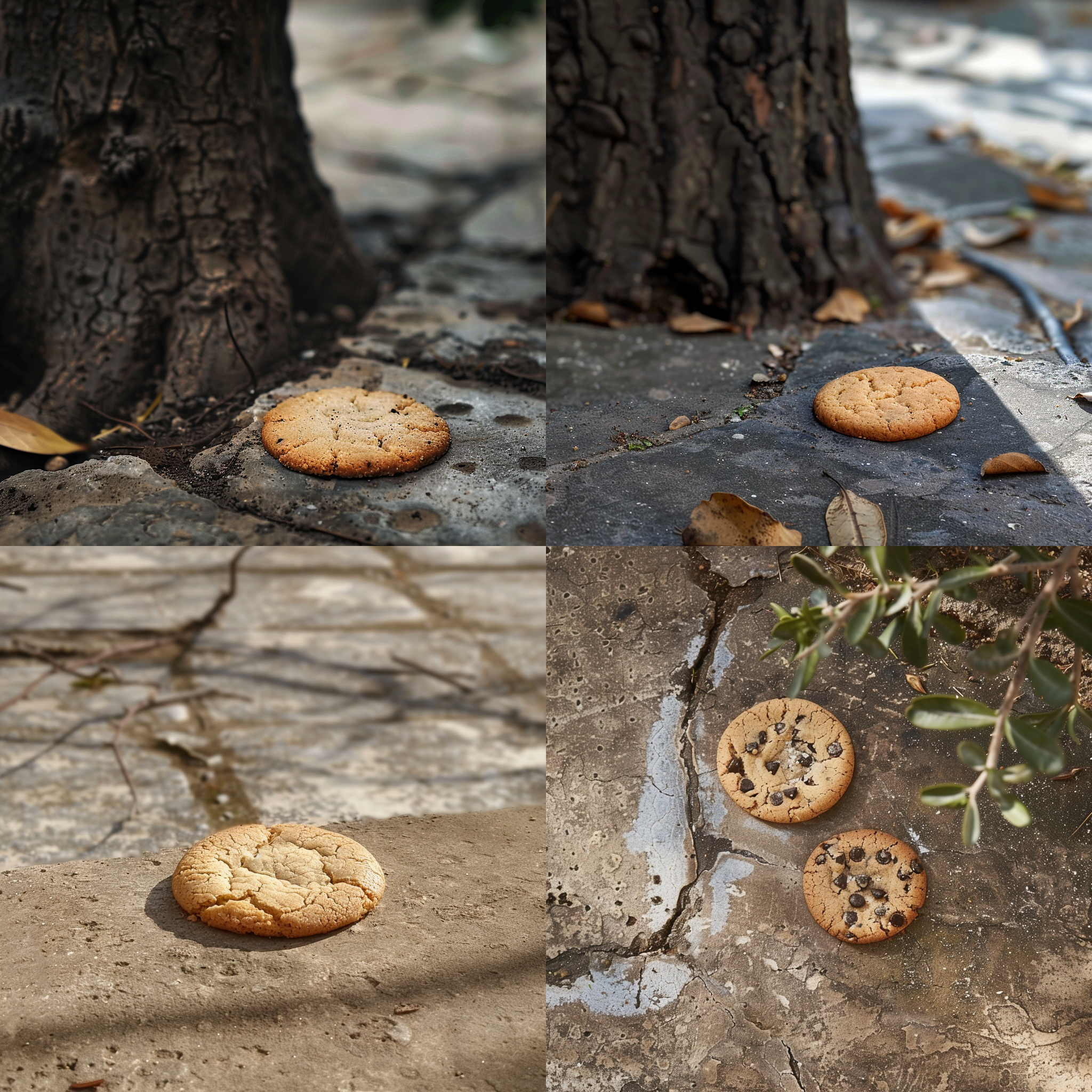 A cookie is shown over a cement floor near a tree --seed 2119332105 --ar 1:1 --v 6 | 2024-03-17T10:40:41Z | |