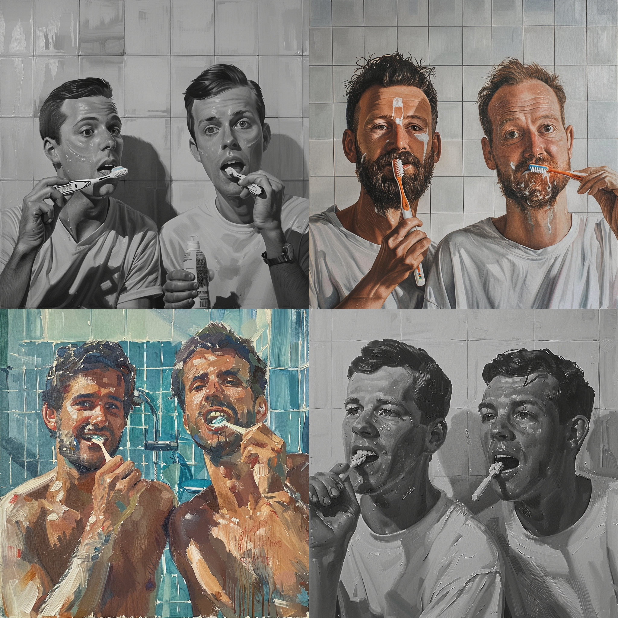 Two men who are brushing their teeth --seed 571629652 --ar 1:1 --v 6 | 2024-03-17T10:37:18Z | |