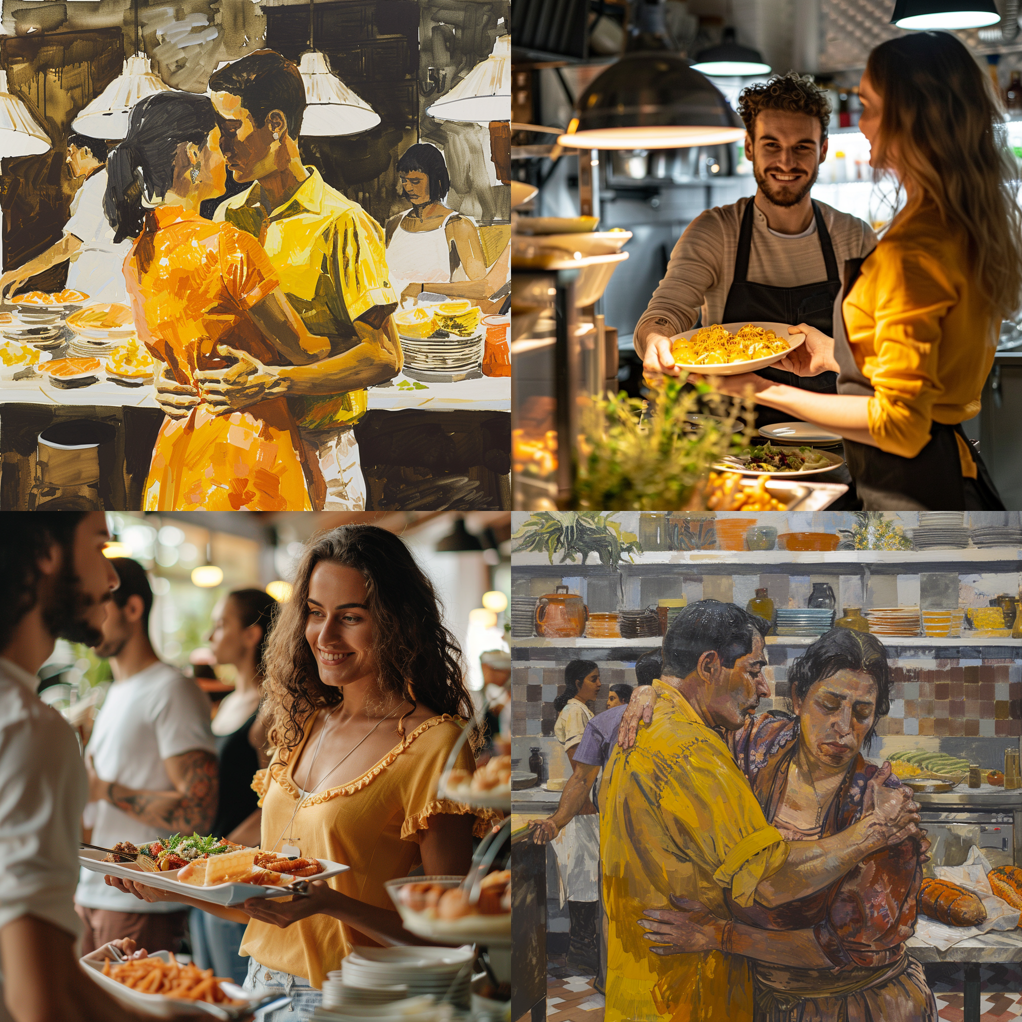 Food in serving area A woman holding a man in yellow shirt --seed 226713150 --ar 1:1 --v 6 | 2024-03-17T11:27:47Z | |
