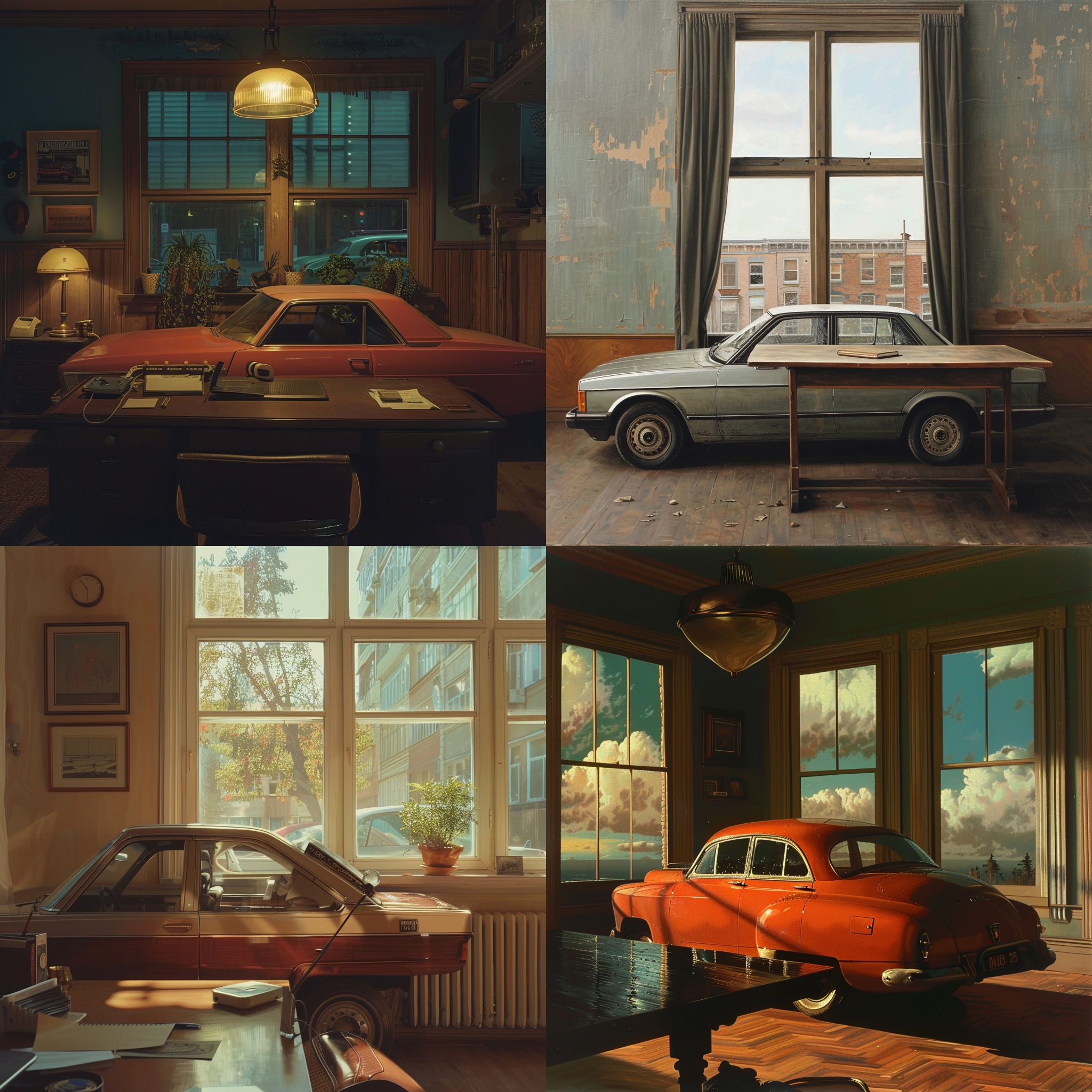 A car stopped in front of a desk some windows inside of a table --seed 3644770503 --ar 1:1 --v 6 | 2024-03-17T11:30:49Z | |