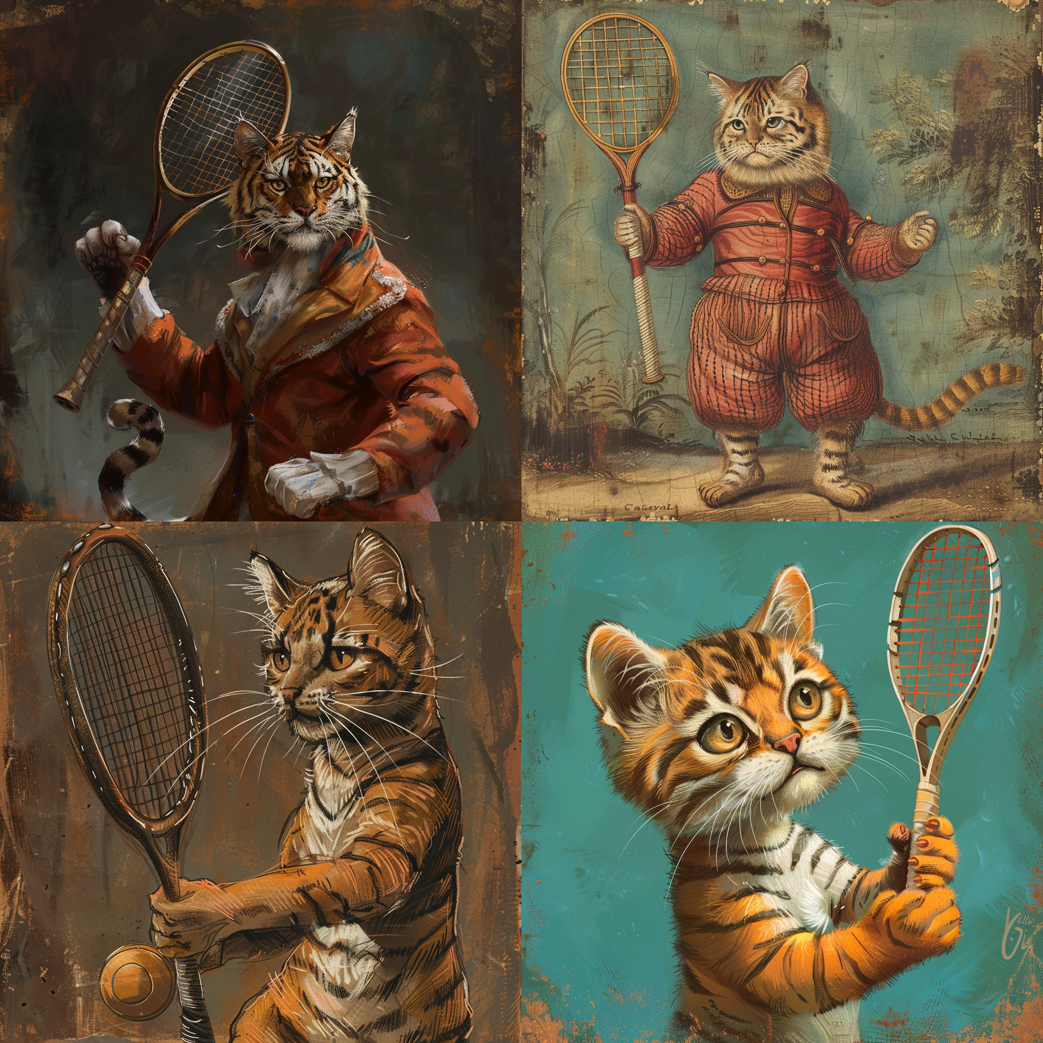 A tiger cat holding a racquet drawn back --seed 444567779 --ar 1:1 --v 6 | 2024-03-17T11:24:29Z | |
