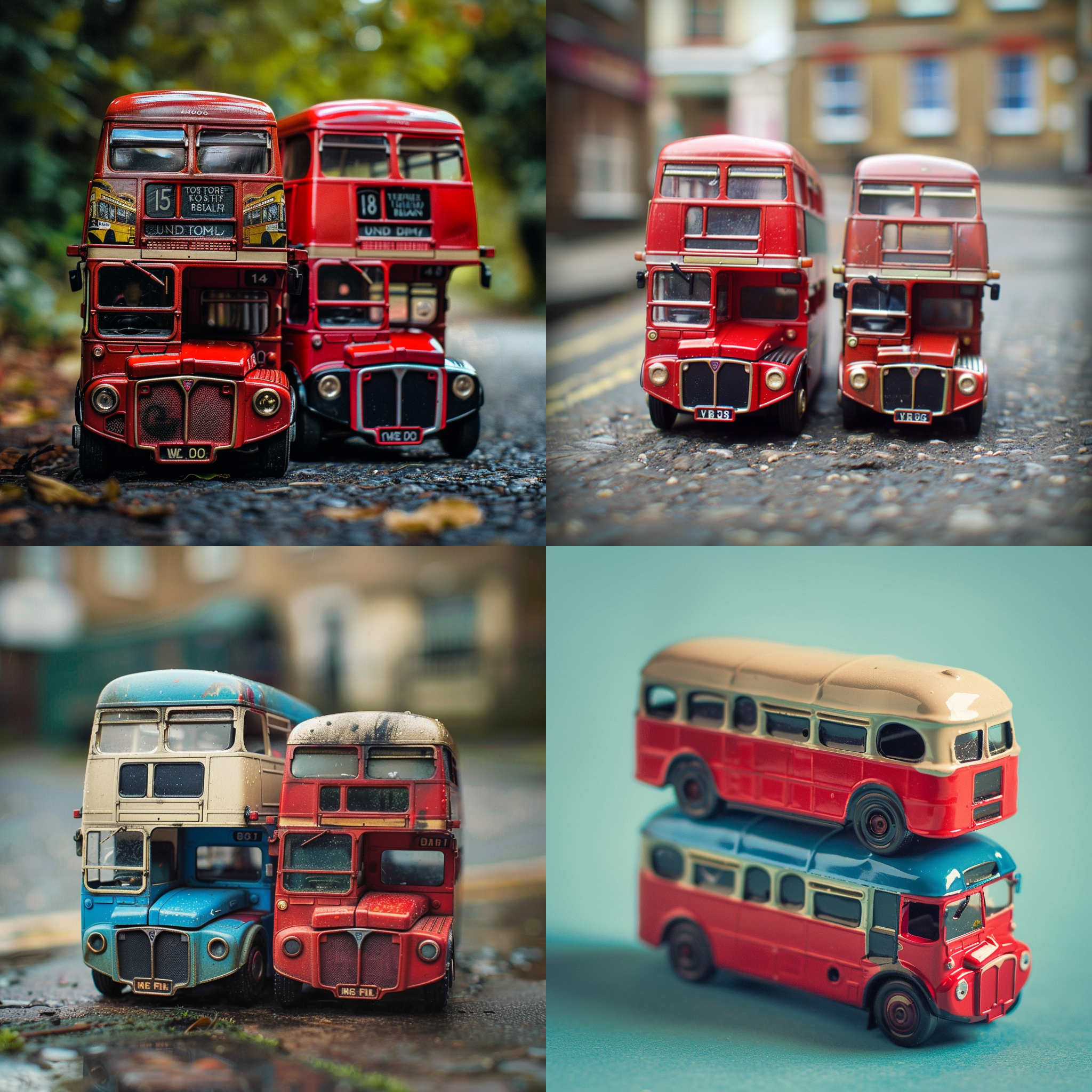 A couple of double Decker bus makes a funny toy --seed 906777902 --ar 1:1 --v 6 | 2024-03-17T11:19:46Z | |
