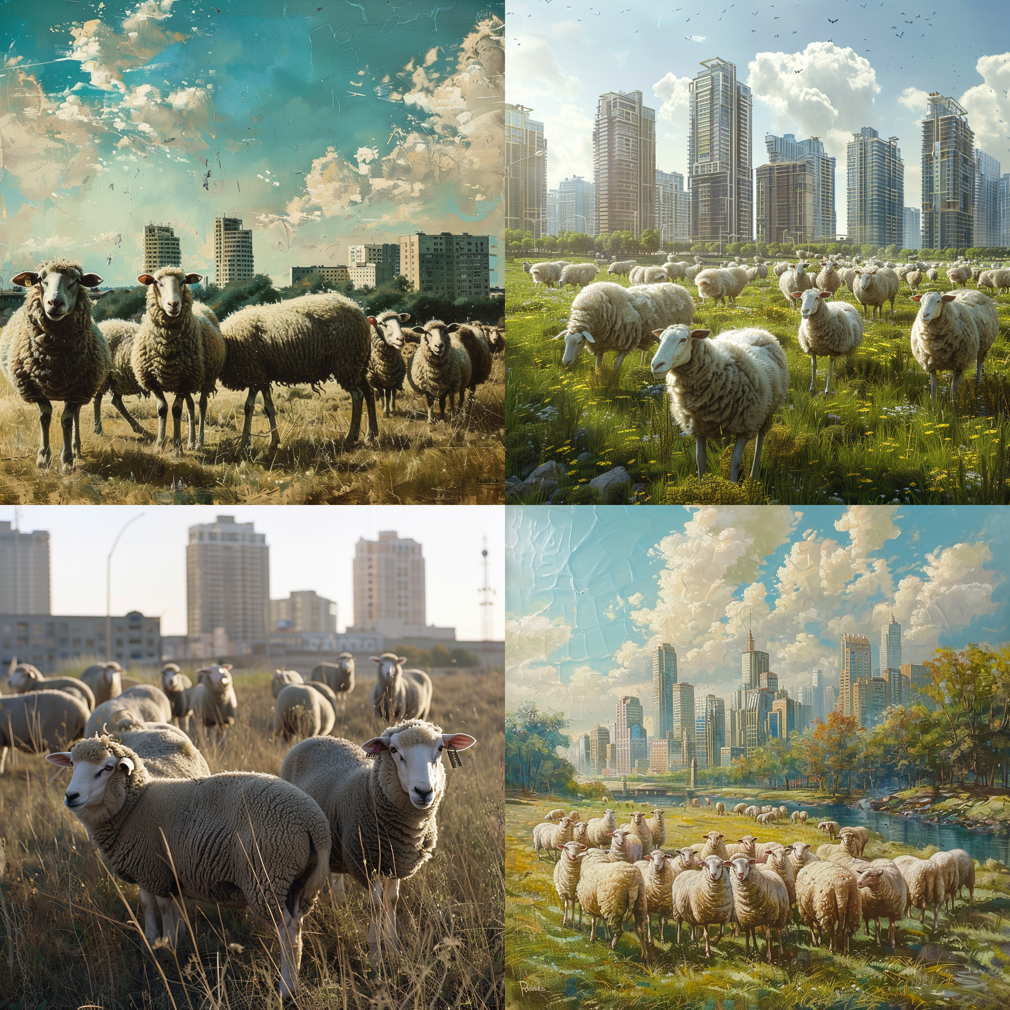 A herd of sheep standing in a pasture, near city buildings --seed 569996857 --ar 1:1 --v 6 | 2024-03-17T11:31:49Z | |