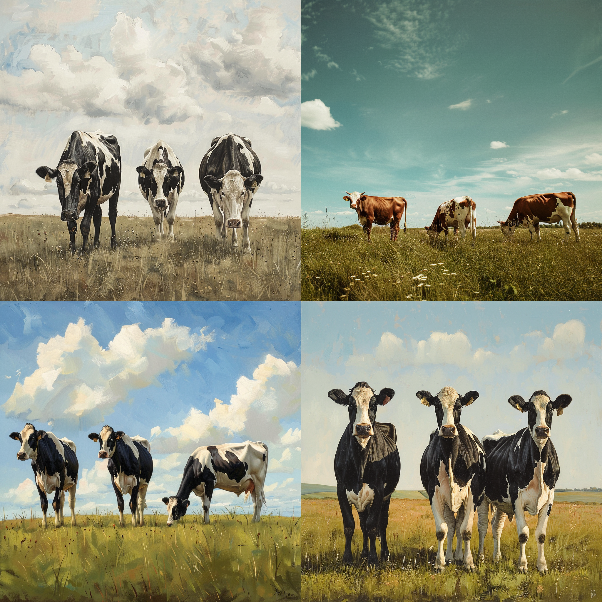 Three cows graze in a clear sky --seed 427091718 --ar 1:1 --v 6 | 2024-03-17T11:24:30Z | |